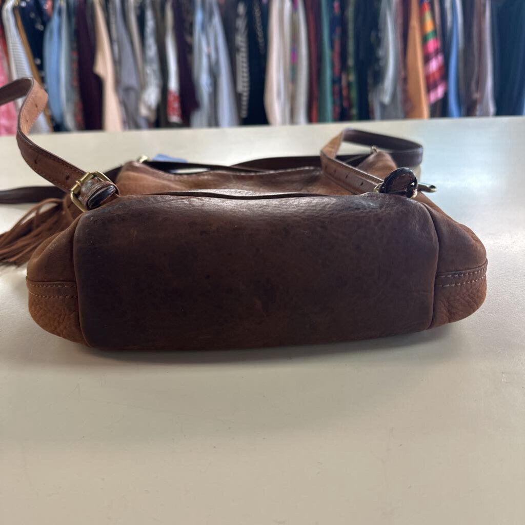 Hobo Inked Hide Brown Leather Feather Print Crossbody Purse