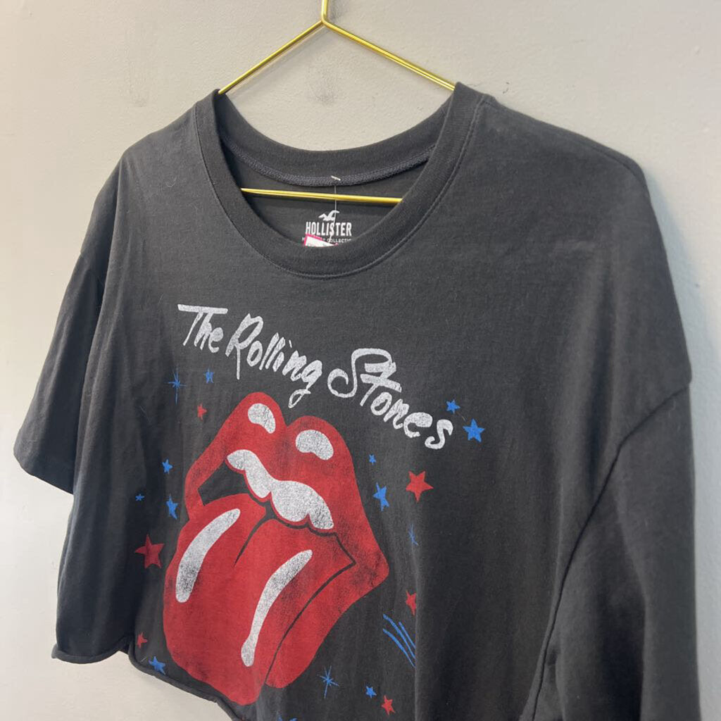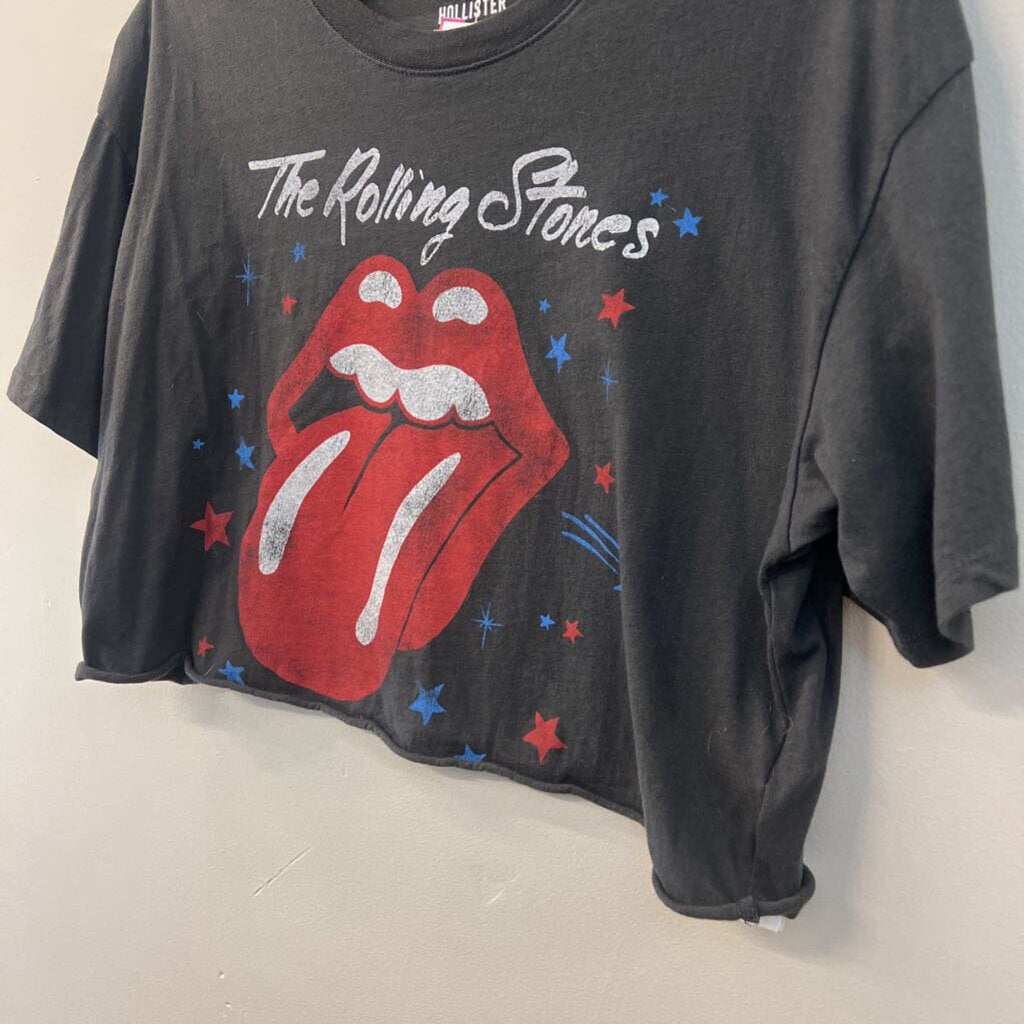 Hollister Grey Cropped Rolling Stones Short Sleeve Graphic Tee Medium