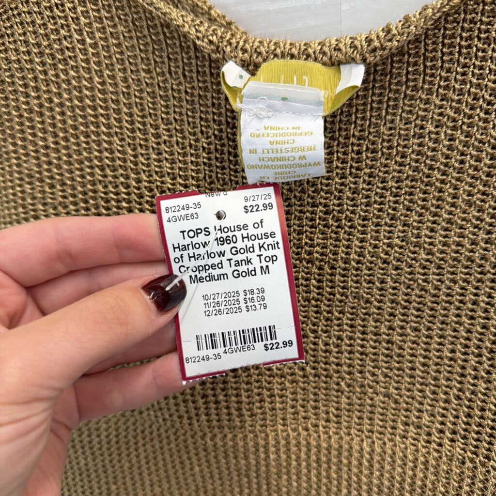 House of Harlow Gold Knit Cropped Tank Top Medium
