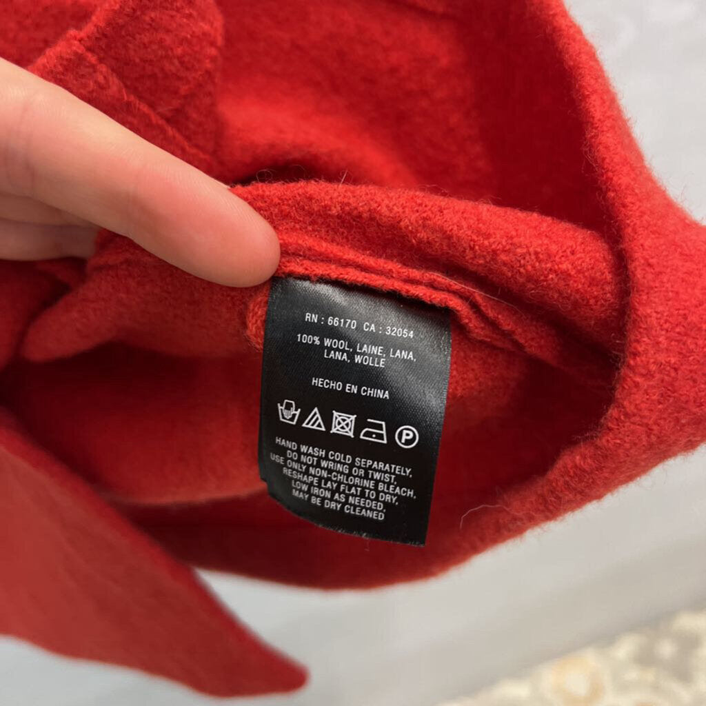HWR Red Oversized Ruffle Collar Long Jacket Large
