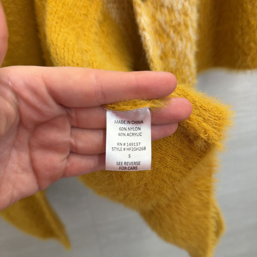 HYFVE White/ Yellow Fuzzy Knit Open Front Cardigan Sweater Small