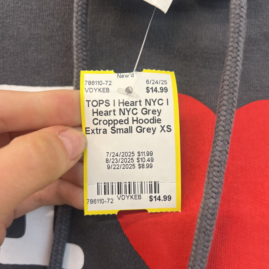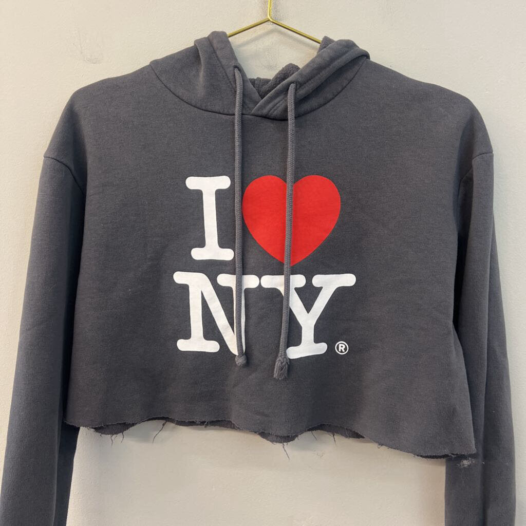 I Heart NYC Grey Cropped Hoodie Extra Small
