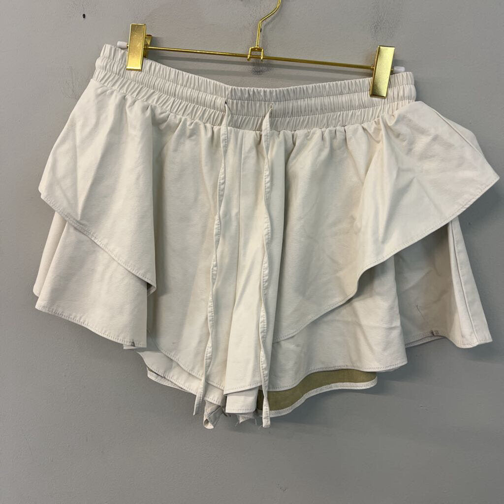 Idem Ditto Cream Faux Leather Layered Shorts Medium