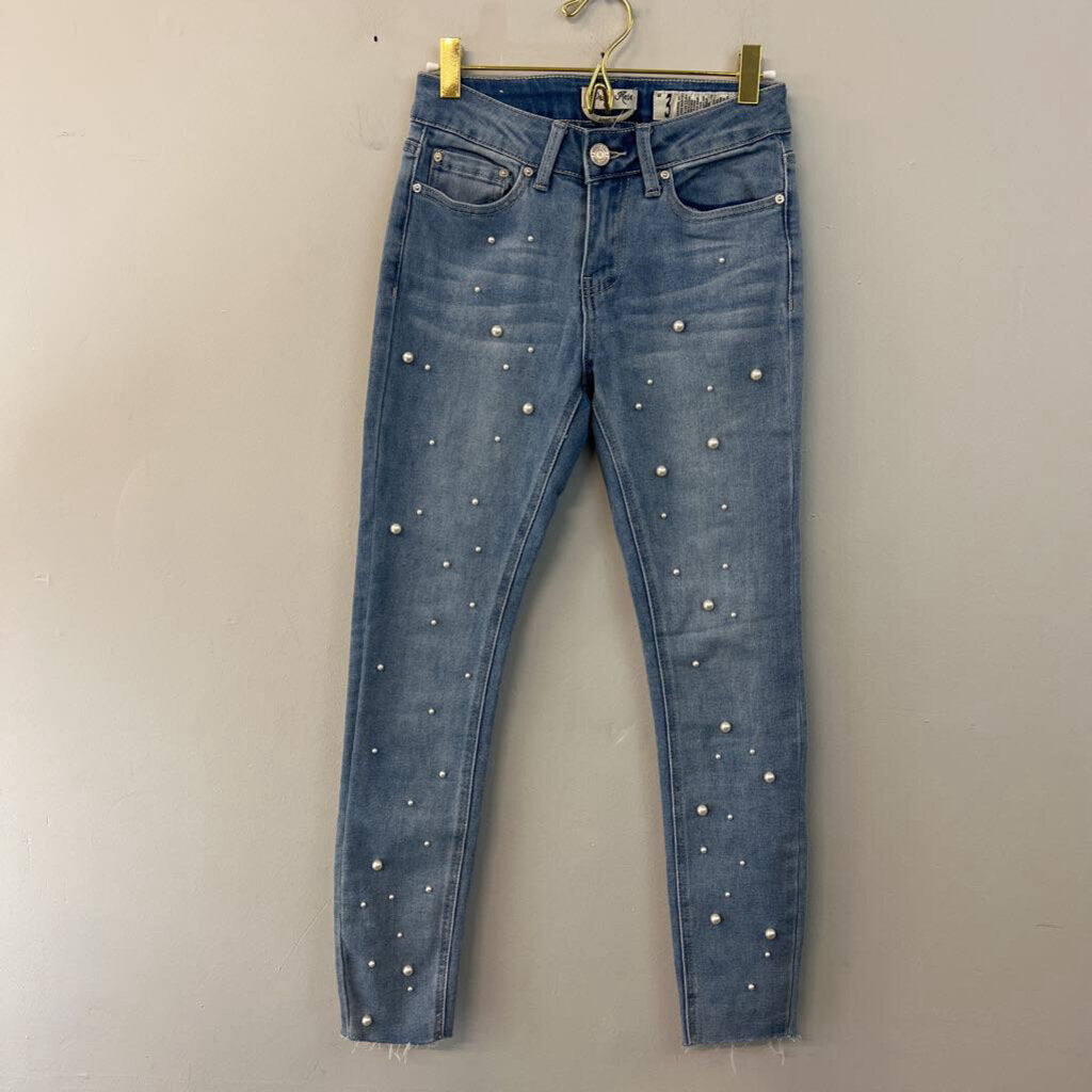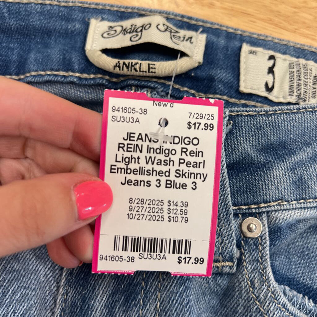 Indigo Rein Light Wash Pearl Embellished Skinny Jeans 3