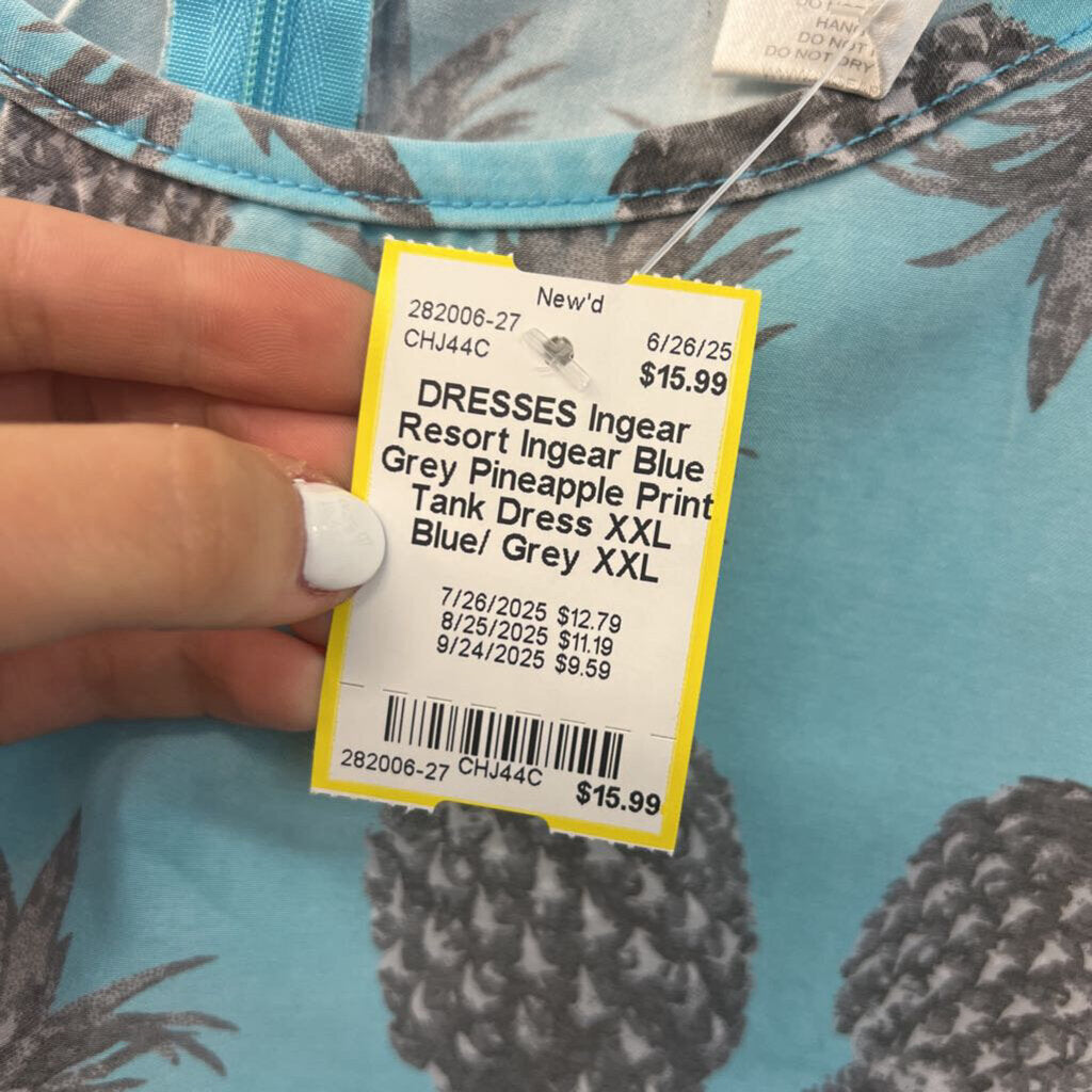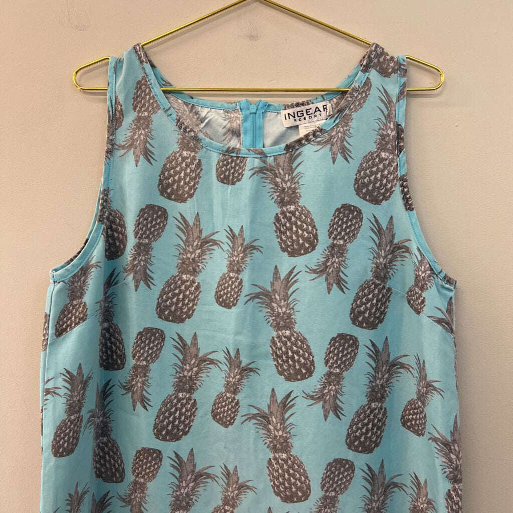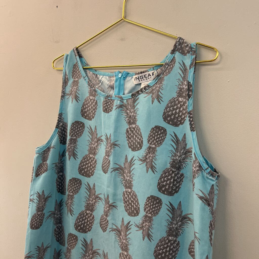 Ingear Blue Grey Pineapple Print Tank Dress XXL