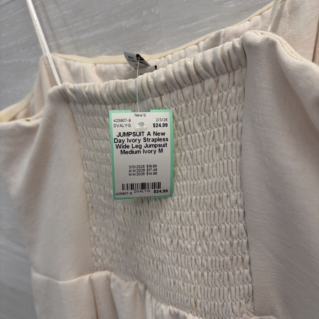 Ivory Strapless Wide Leg Jumpsuit Medium
