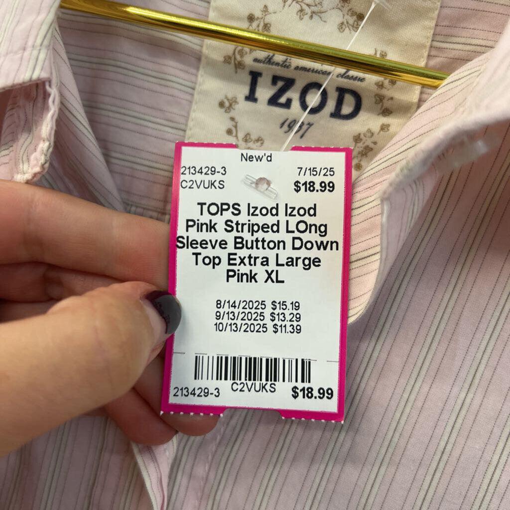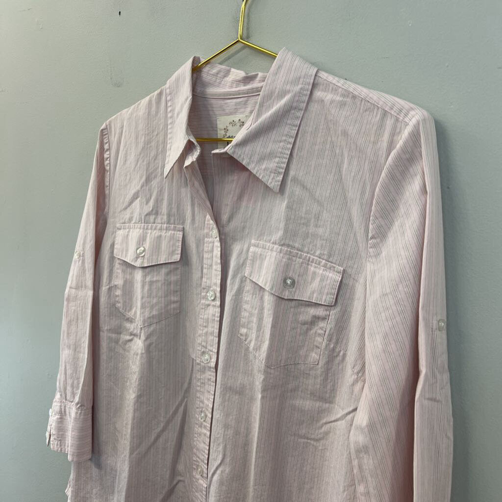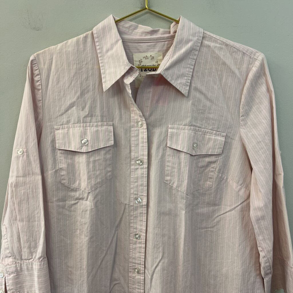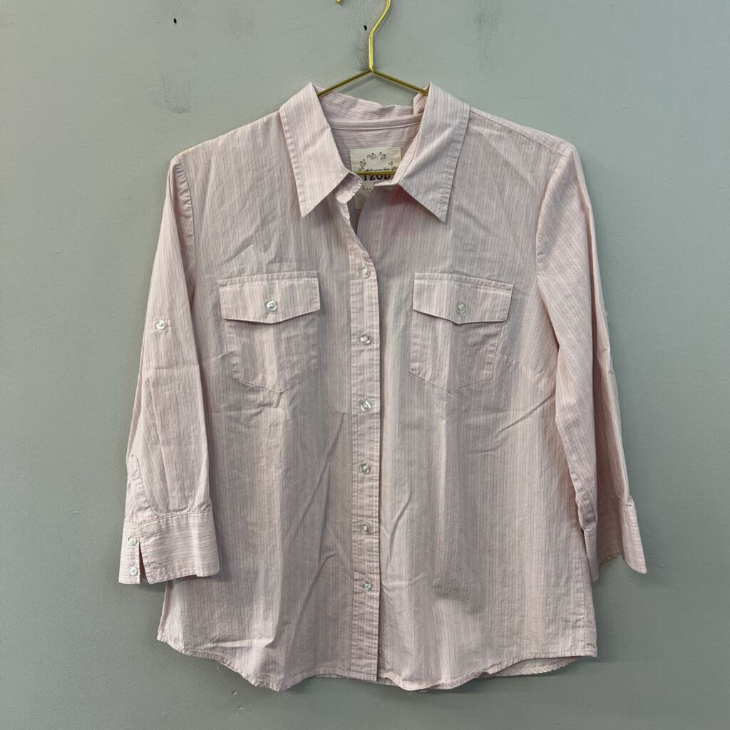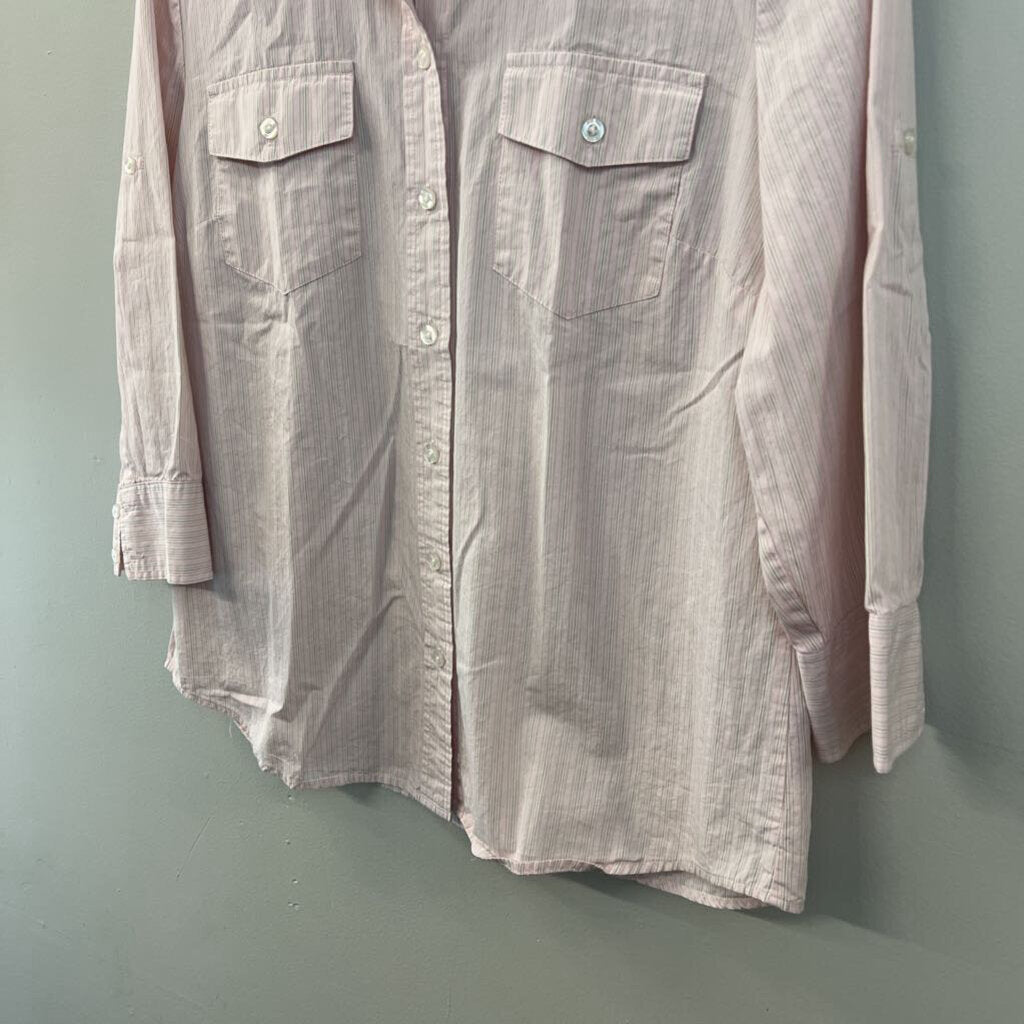 Izod Pink Striped LOng Sleeve Button Down Top Extra Large