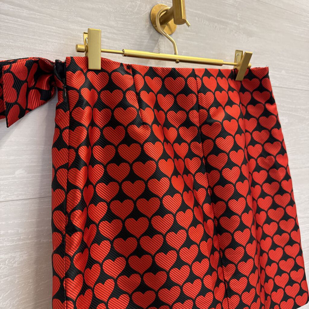 J Crew Black/ Red Textured Heart Print Side Bow Skirt 6