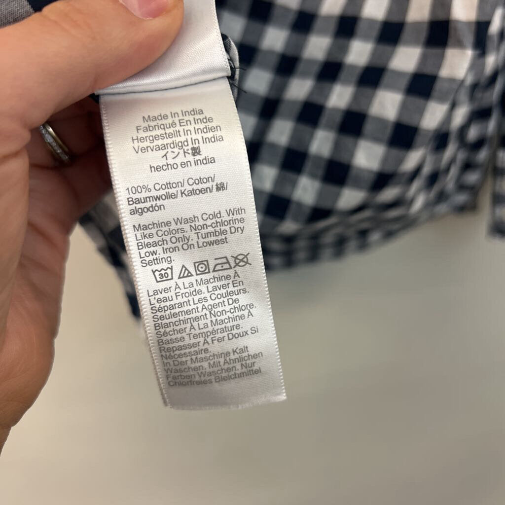 J Crew Blue/ White Gingham Long Sleeve Button Down Top Medium Petite