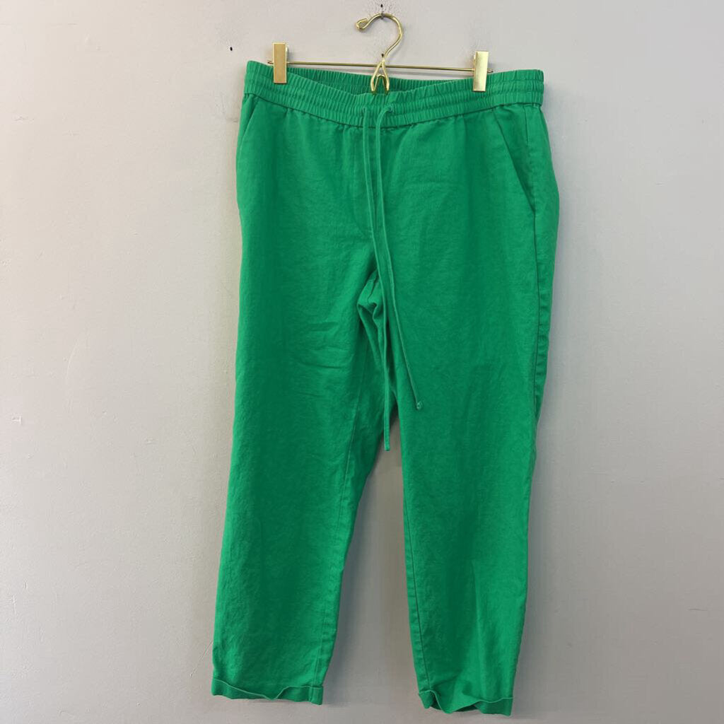 J Crew Green Linen Blend Wide Leg Pull On Pants 10