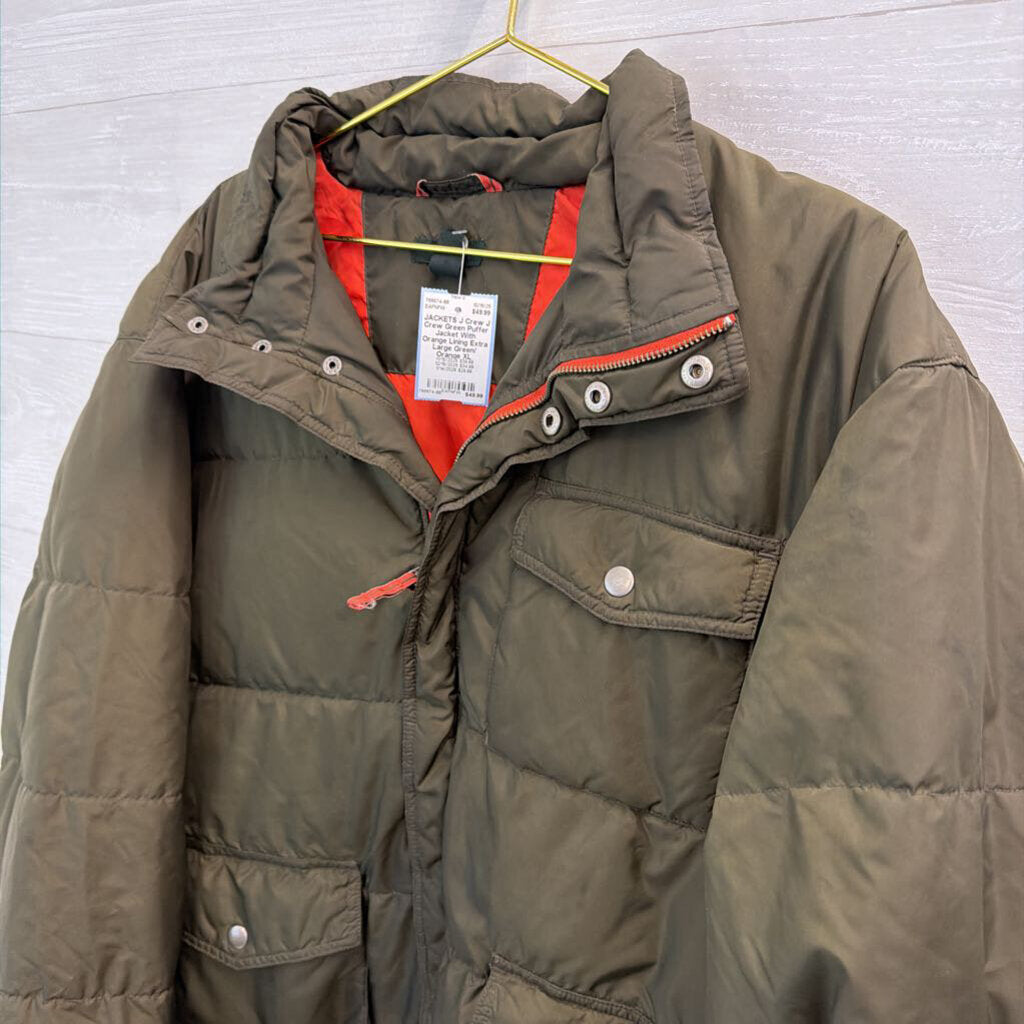 J Crew Green Puffer Jacket With Orange Lining Extra Large