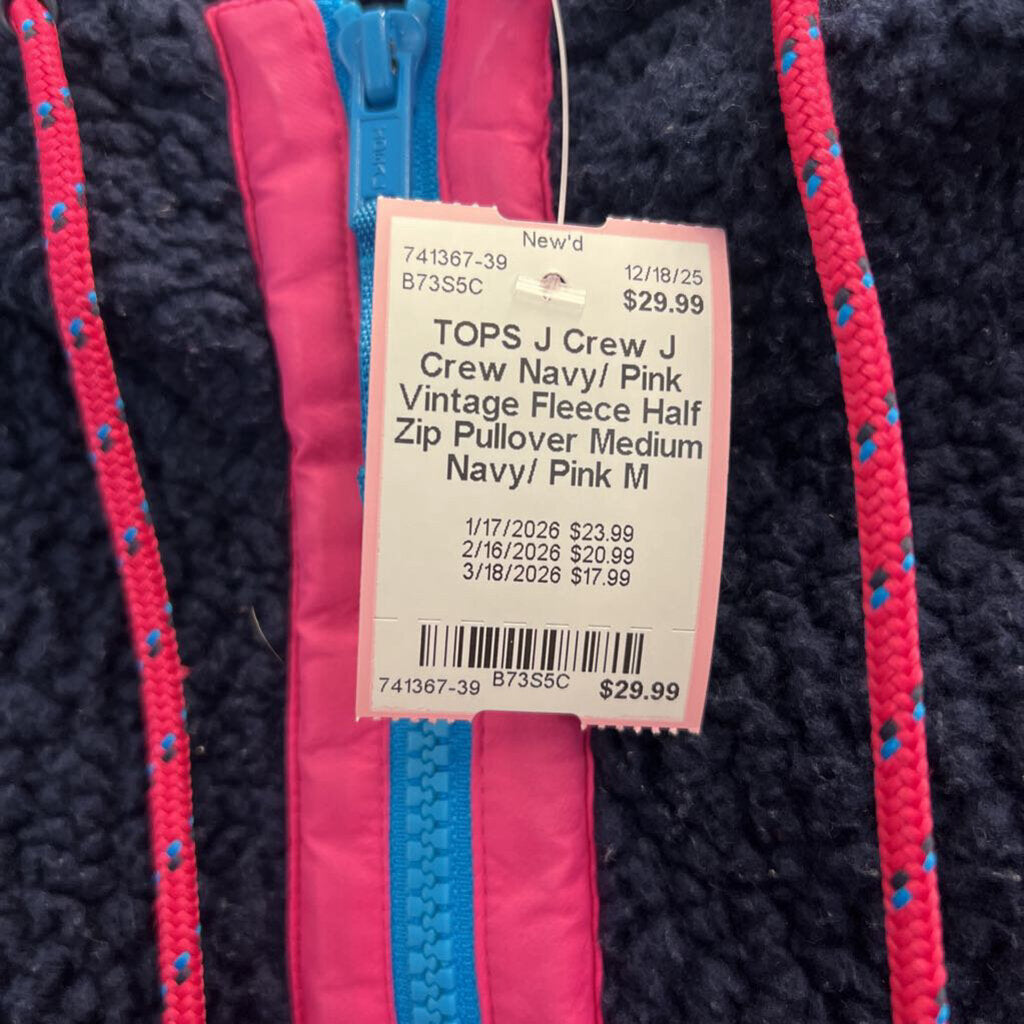 J Crew Navy/ Pink Vintage Fleece Half Zip Pullover Medium