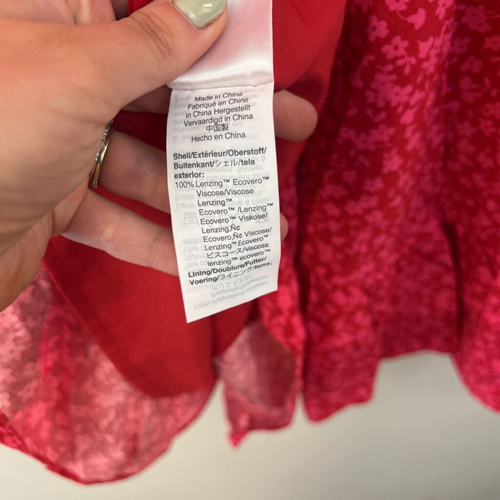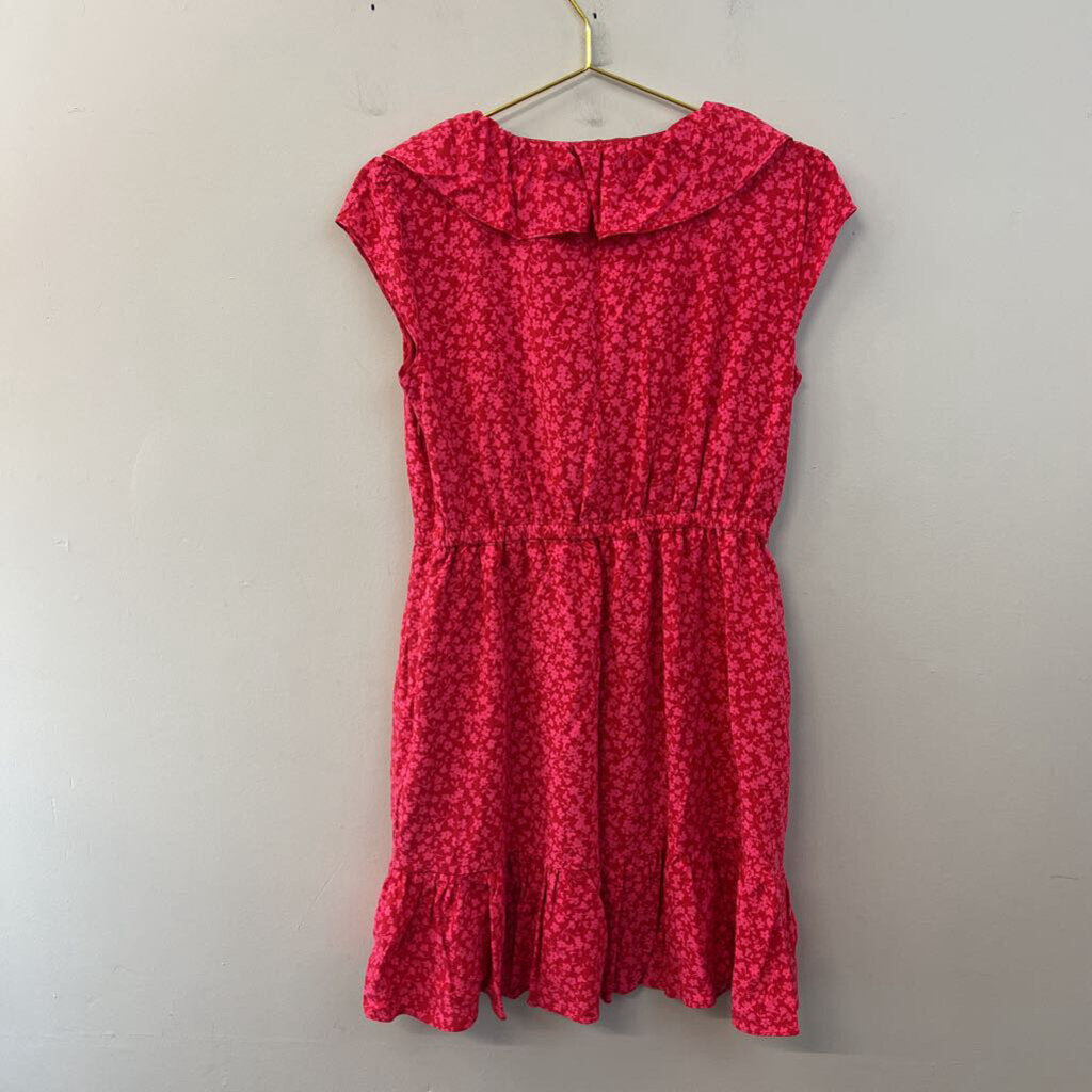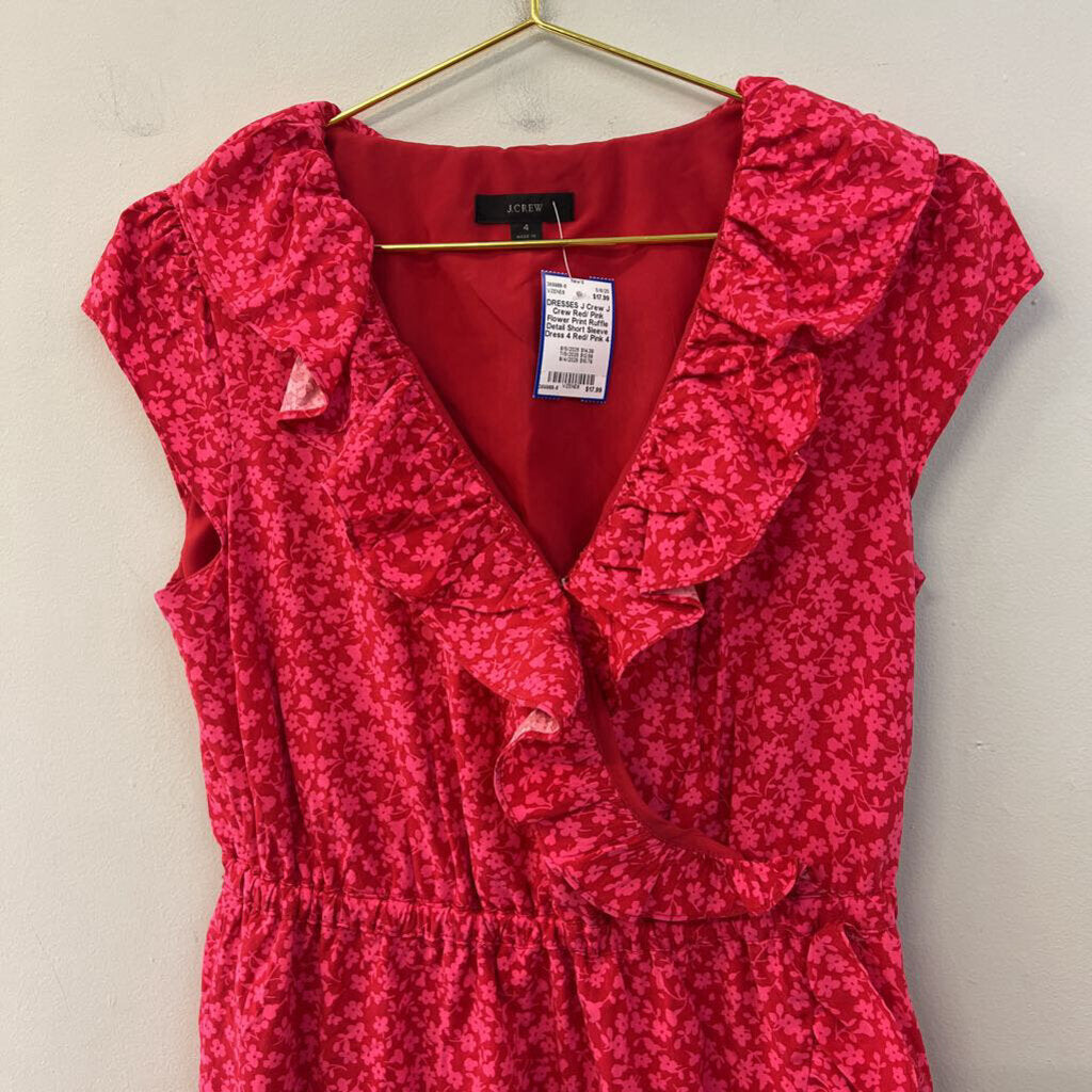 J Crew Red/ Pink Flower Print Ruffle Detail Short Sleeve Dress 4