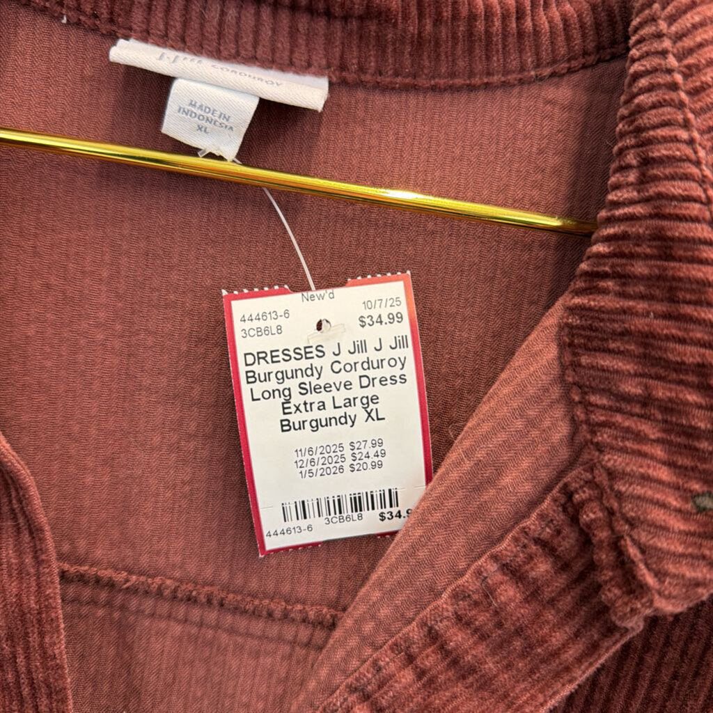 J Jill Burgundy Corduroy Long Sleeve Dress Extra Large