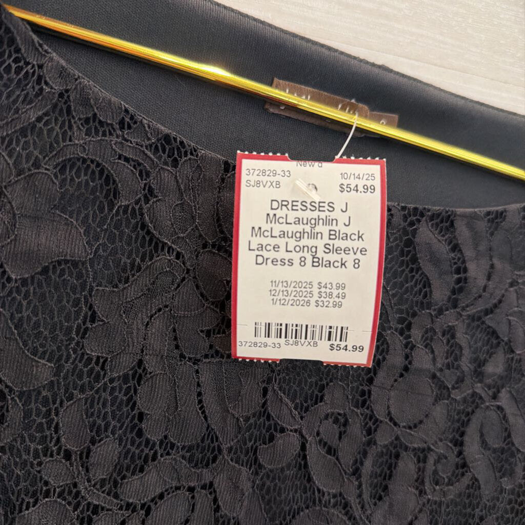 J McLaughlin Black Lace Long Sleeve Dress 8