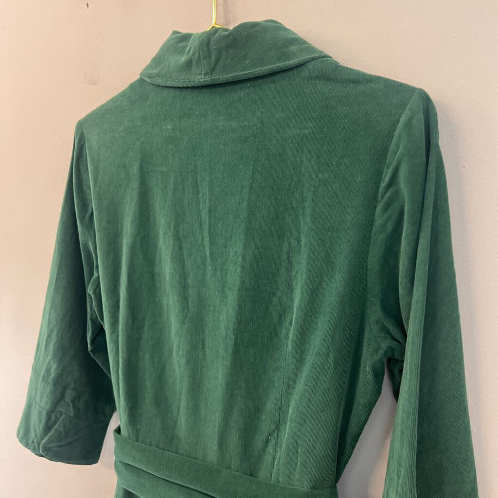 J Peterman Green Corduroy Long Sleeve Belt Waist Button Down Midi Dress 10