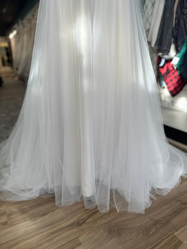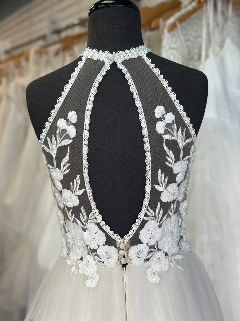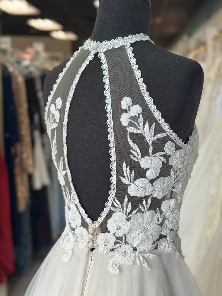 Jacquelin Ivory/ Champagne Lace High Neck A Line Bridal Gown 6