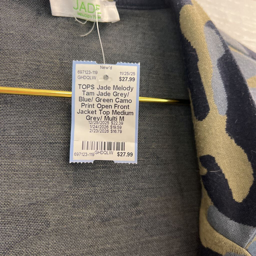 Jade Grey/ Blue/ Green Camo Print Open Front Jacket Top Medium