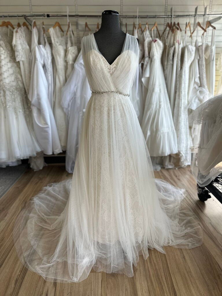 Jasmine Collection Ivory/ Champagne Lace Bridal Gown With Ivory Tulle Overlay 14