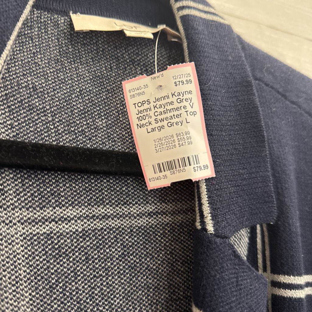 Jenni Kayne Grey 100% Cashmere V Neck Sweater Top Large