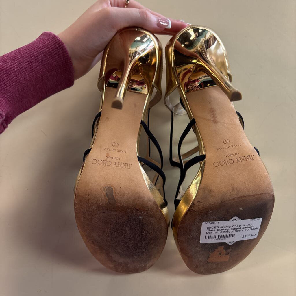 Jimmy Choo Bunting Caged Metallic Leather Strappy Heels 40