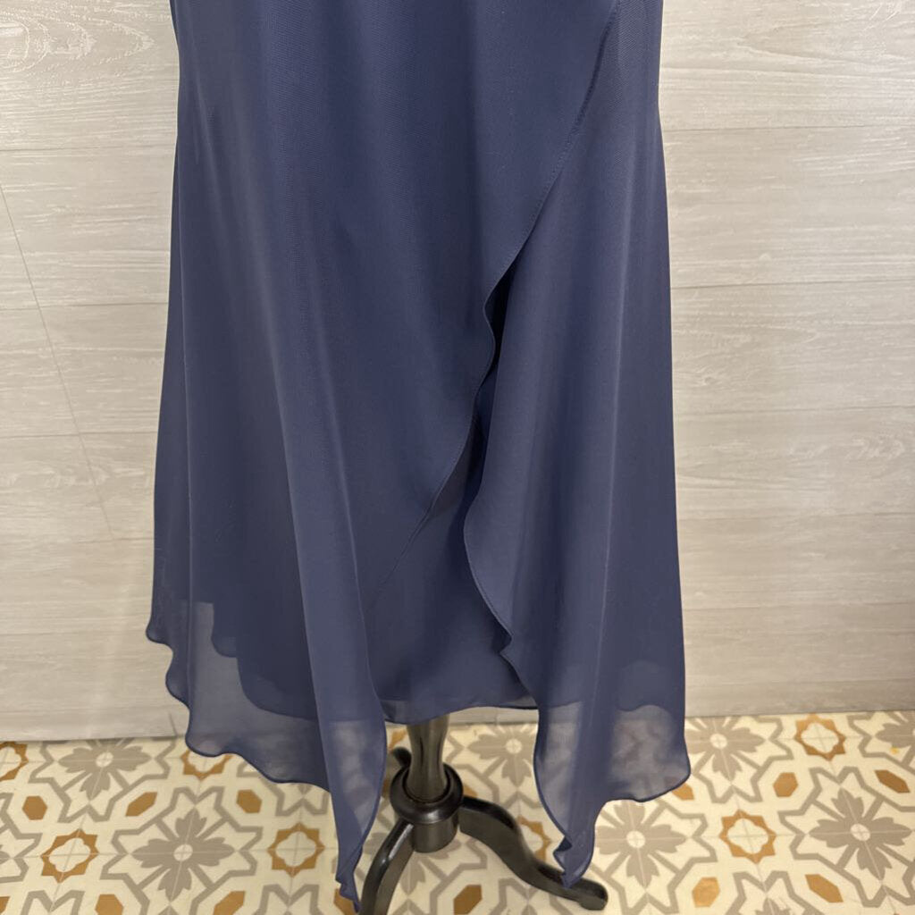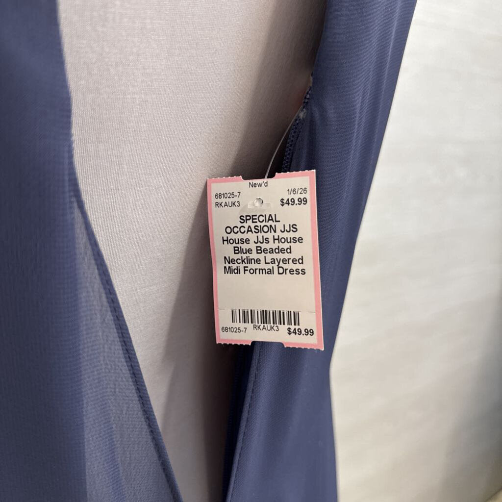 JJs House Blue Beaded Neckline Layered Midi Formal Dress Medium