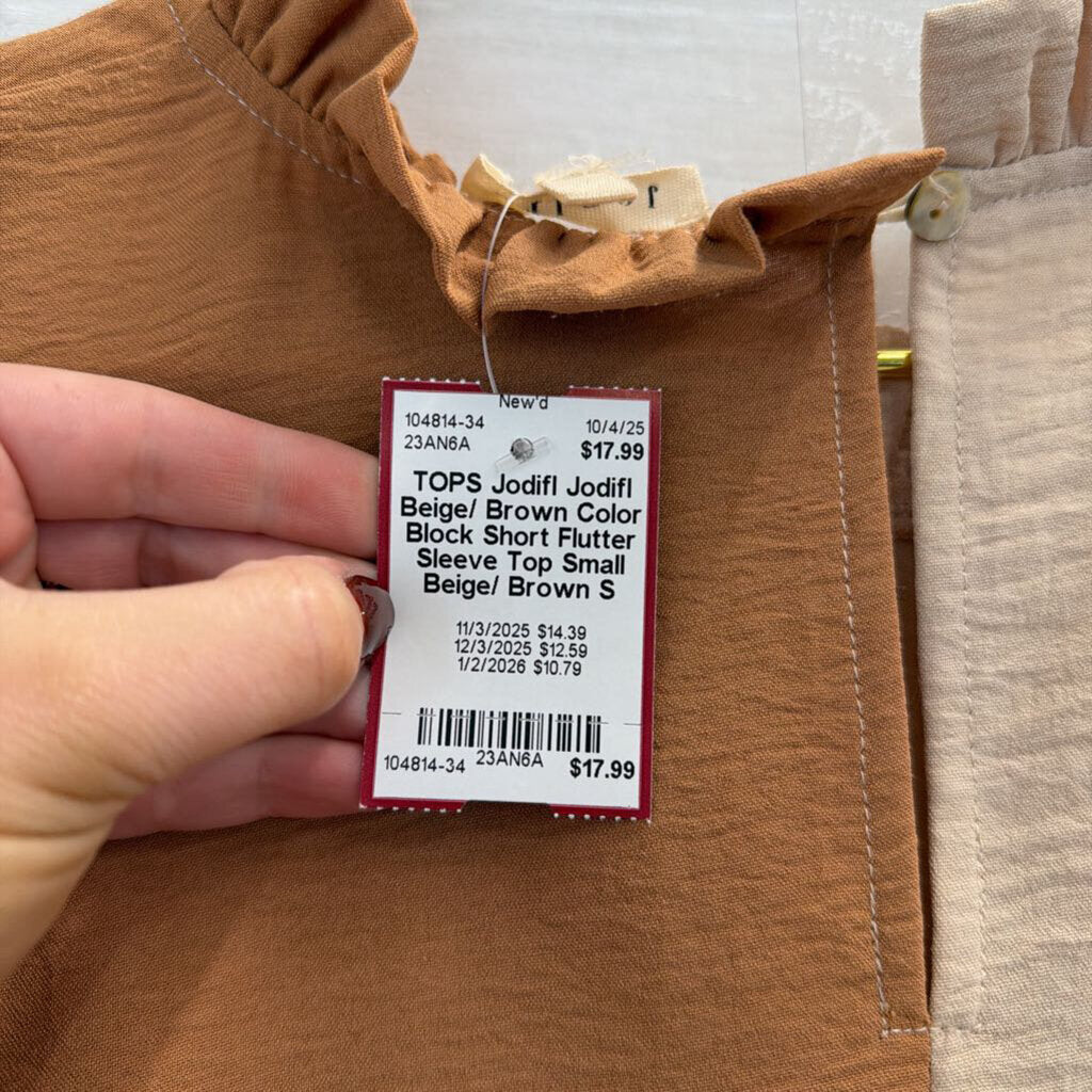 Jodifl Beige/ Brown Color Block Short Flutter Sleeve Top Small