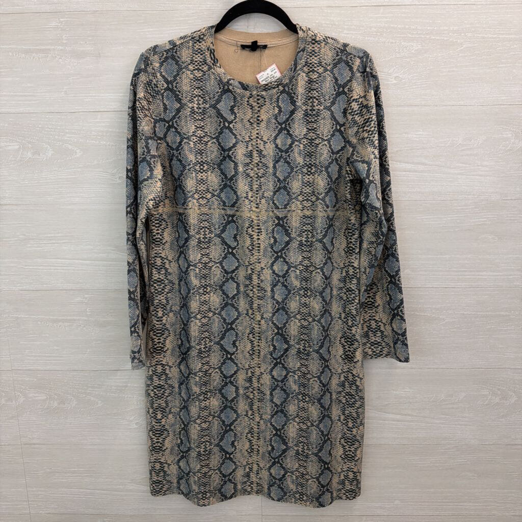 Joh Blue/ Beige Snakeskin Print Suede Long Sleeve Dress Small