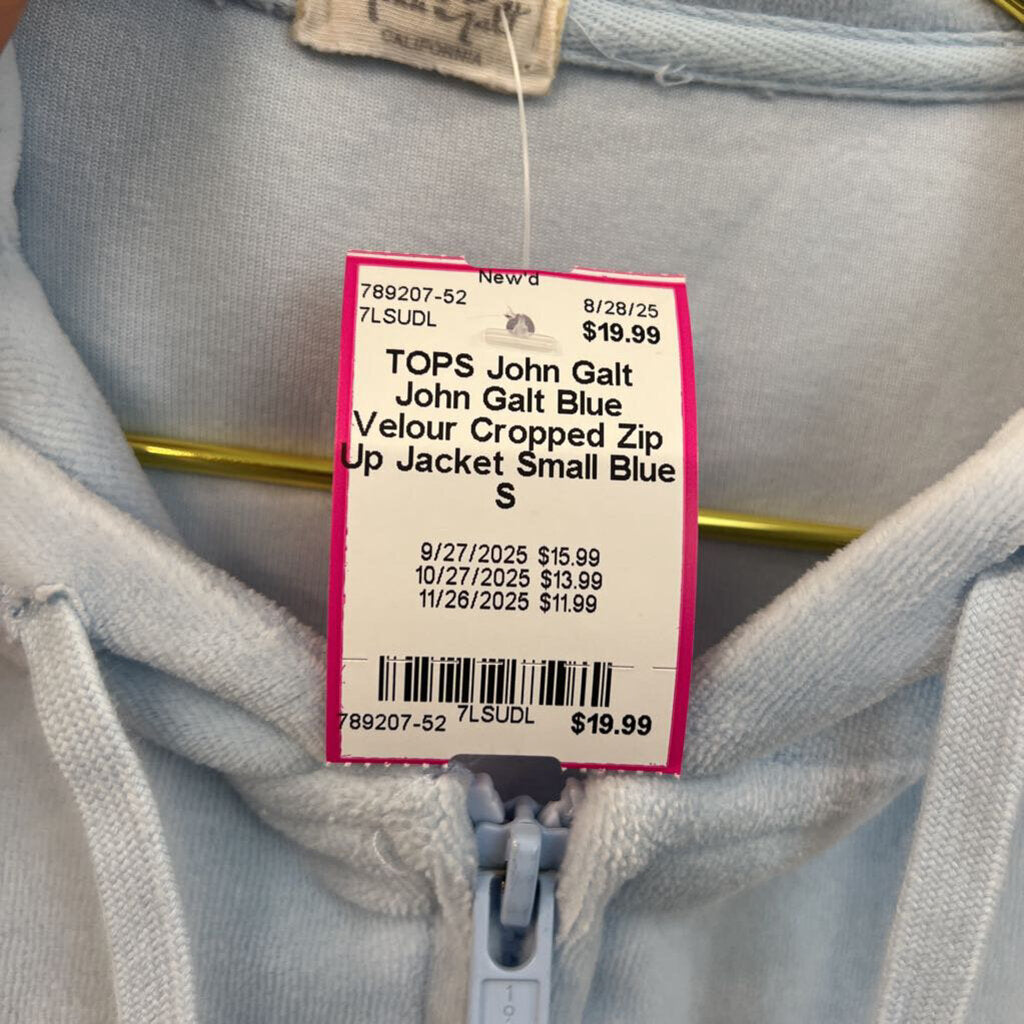 John Galt Blue Velour Cropped Zip Up Jacket Small