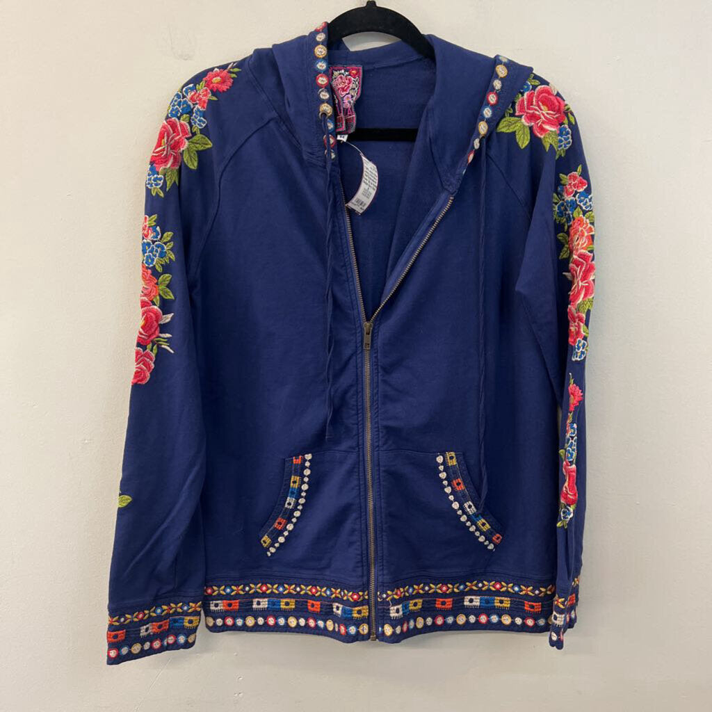 Johnny Was Navy/ Multi Embroidered Flower Zip Up Hoodie Medium