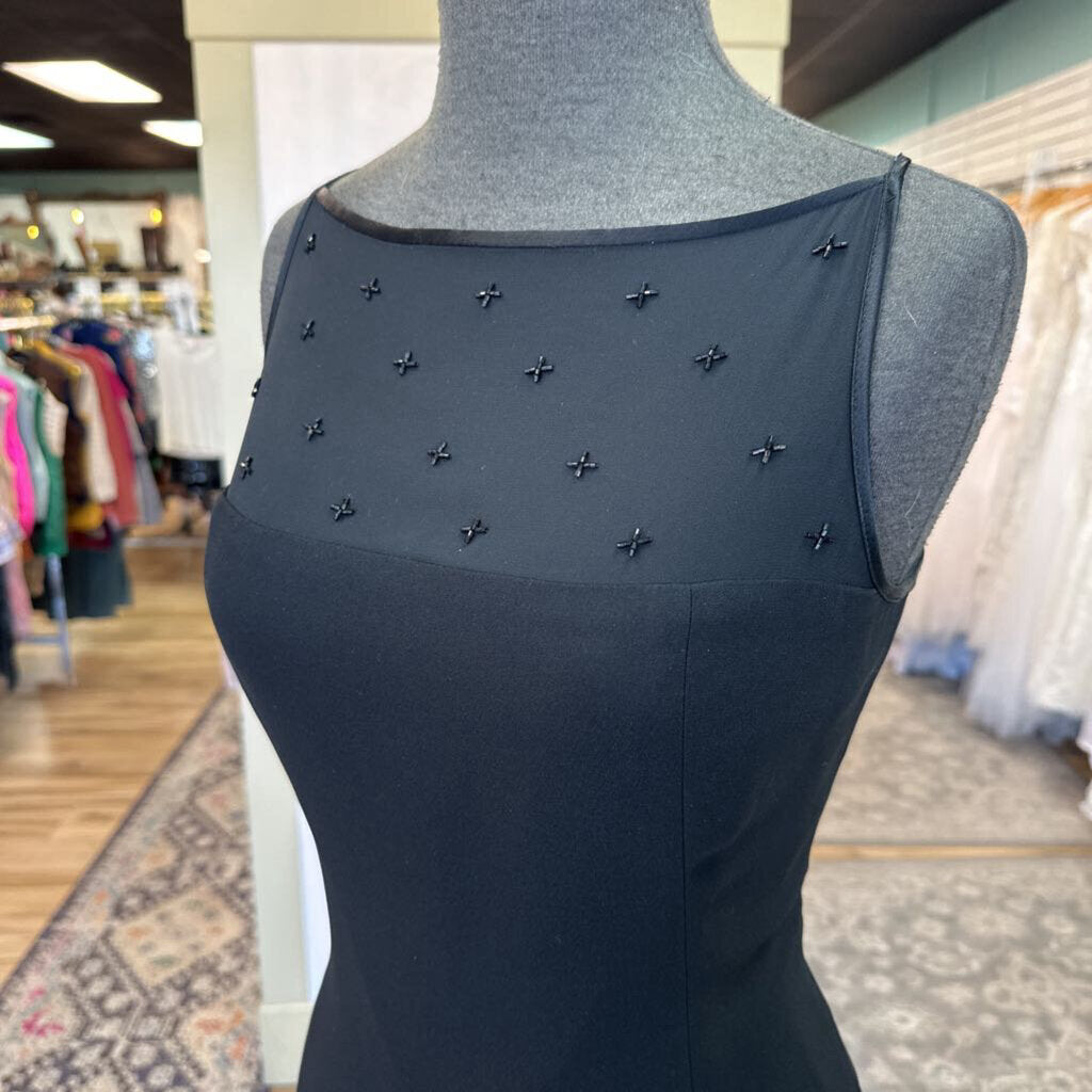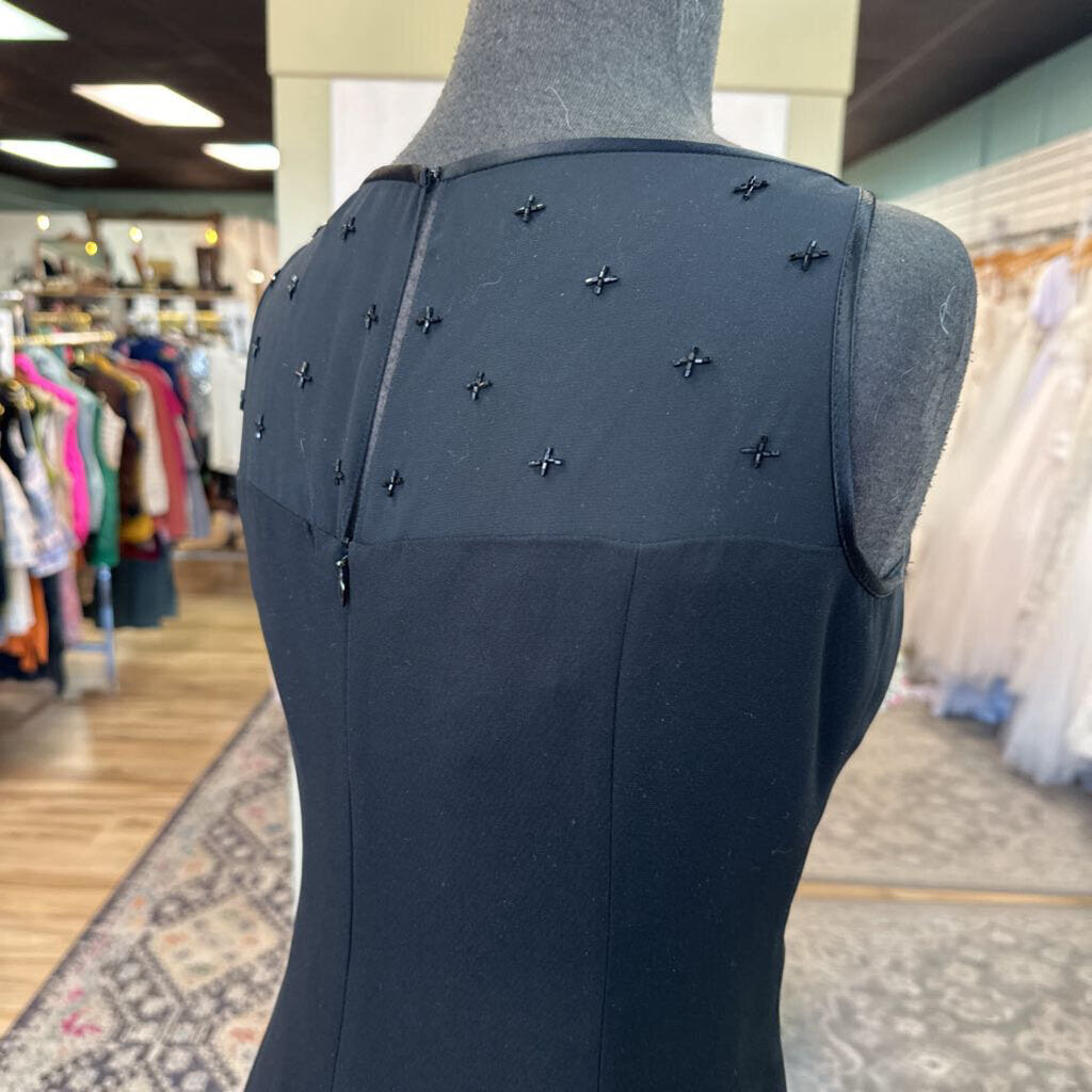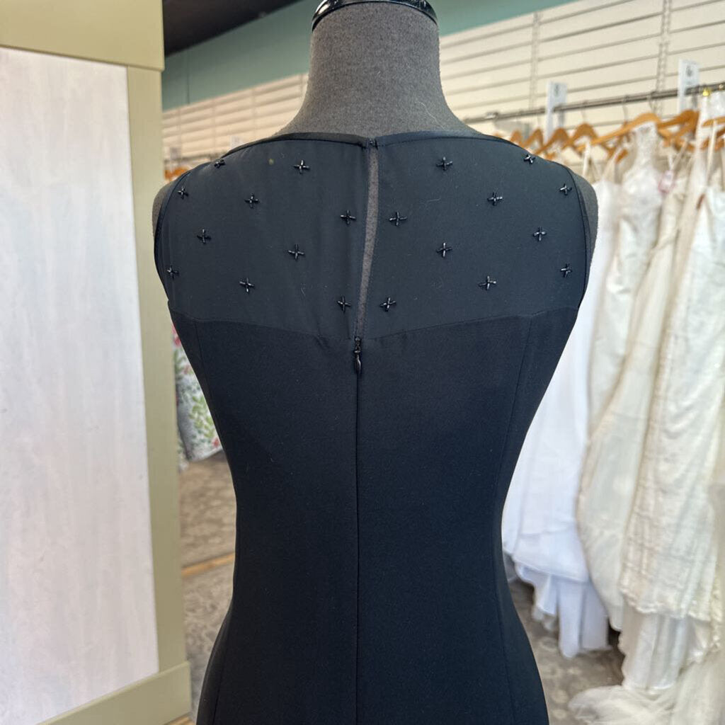 Jones New York Black Beaded Illusion Neckline Short Formal Dress 10