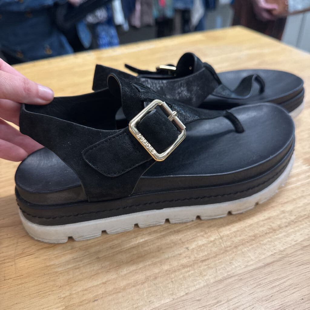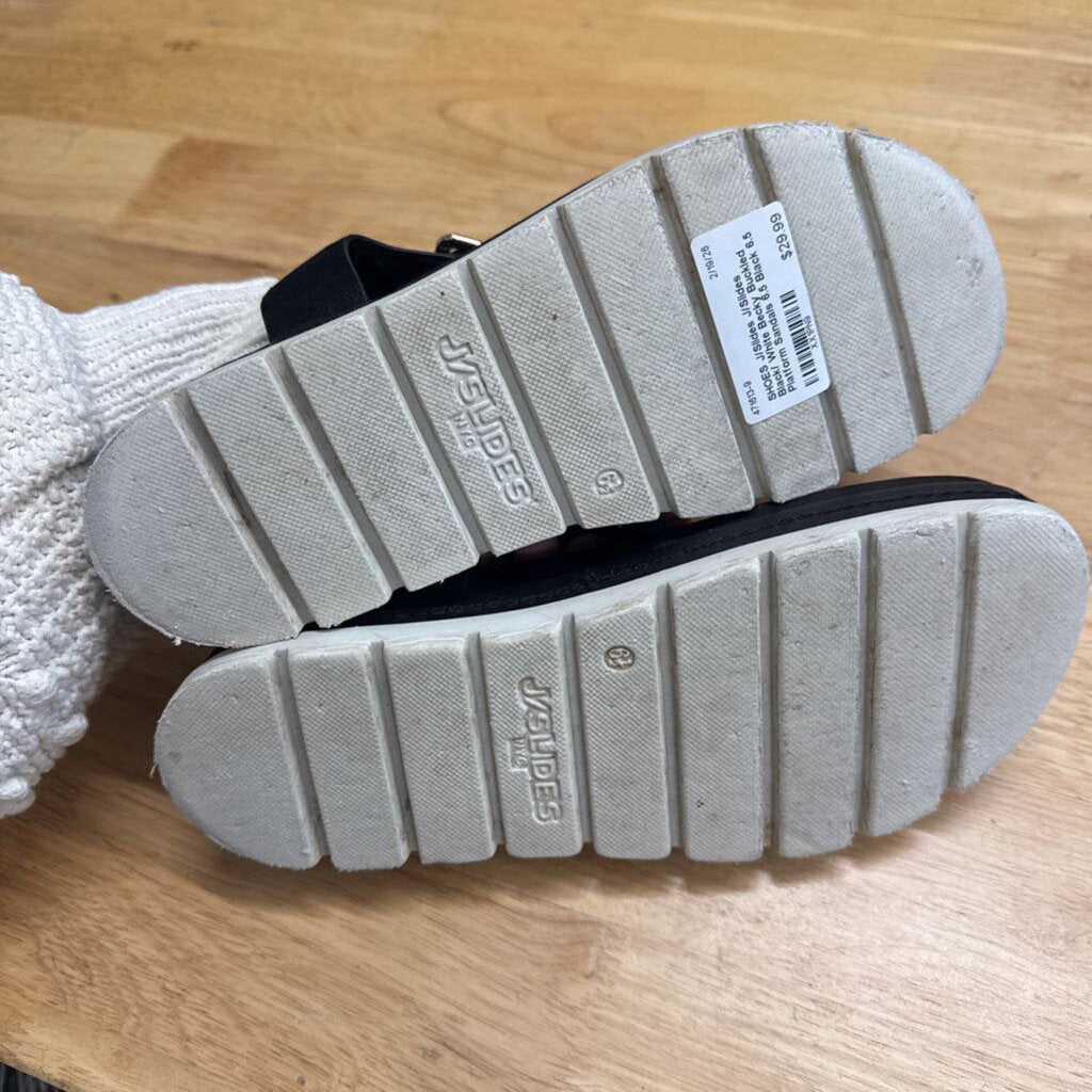 J/Slides Black/ White Becky Buckled Platform Sandals 6.5