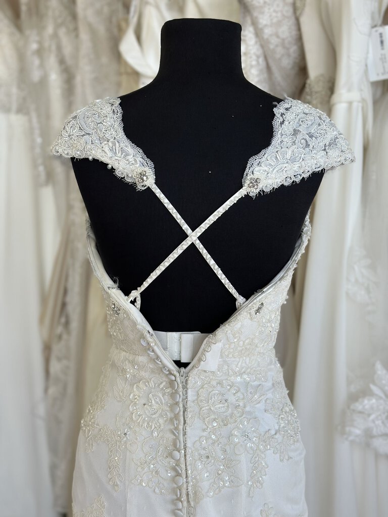 Justin Alexander High Neck Cap Sleeve Fitted Lace Wedding Dress 8
