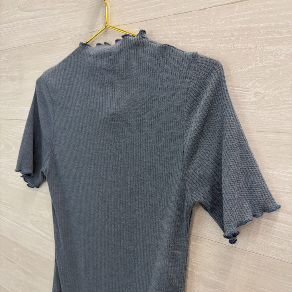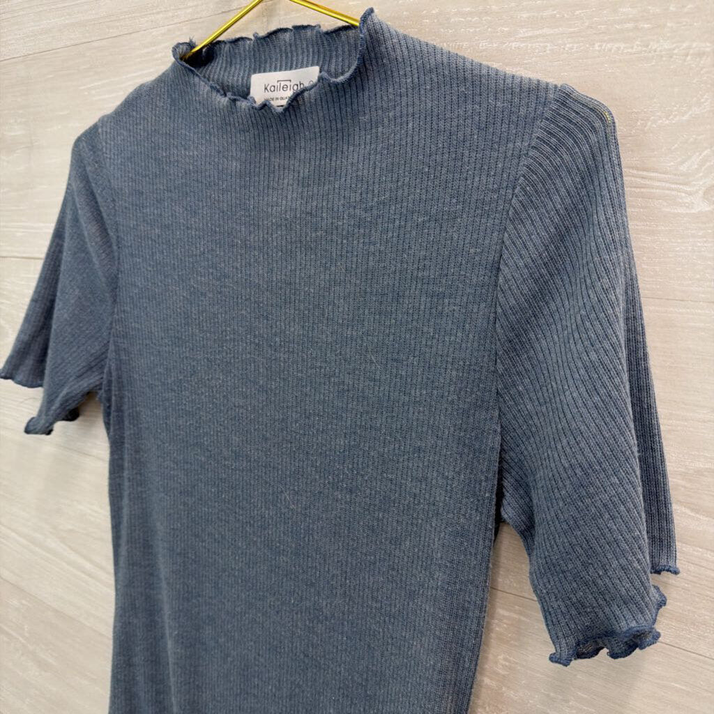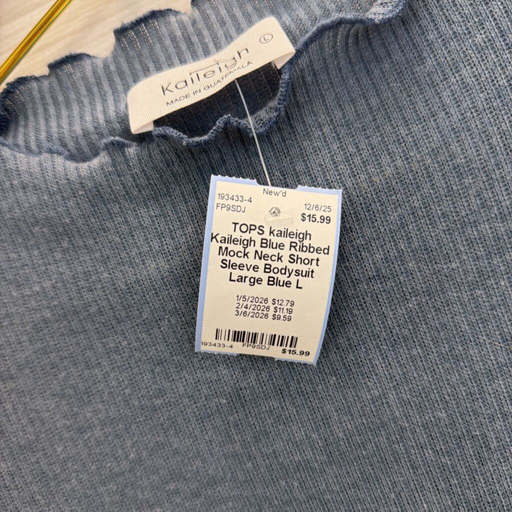 Kaileigh Blue Ribbed Mock Neck Short Sleeve Bodysuit Large
