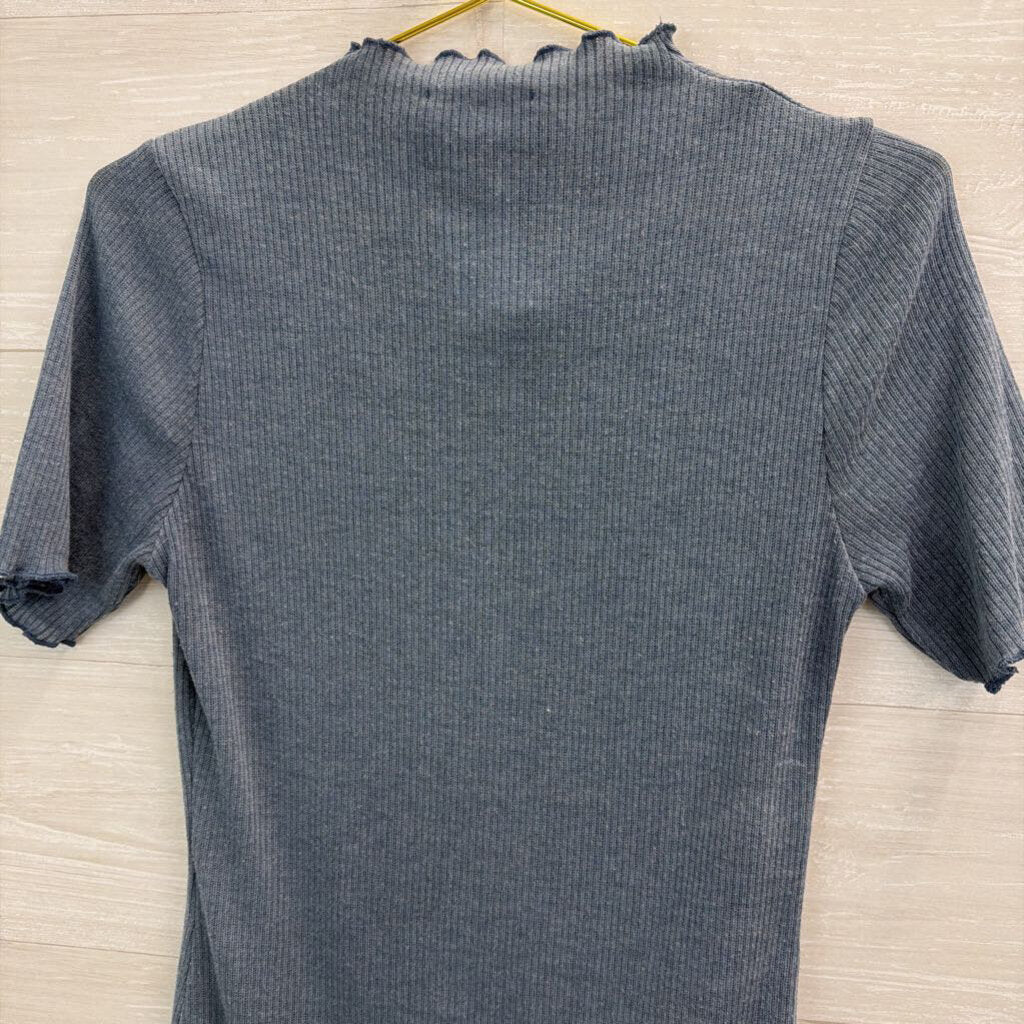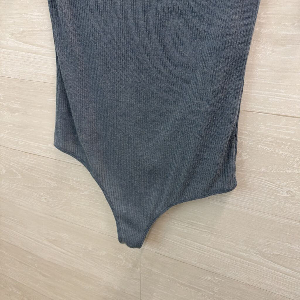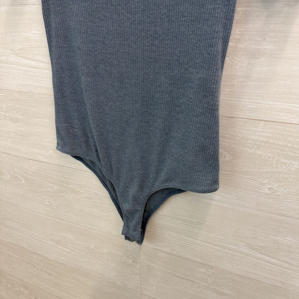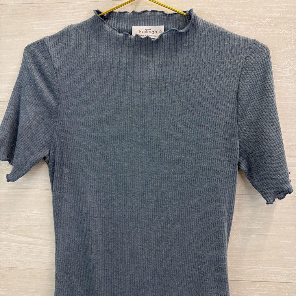 Kaileigh Blue Ribbed Mock Neck Short Sleeve Bodysuit Large