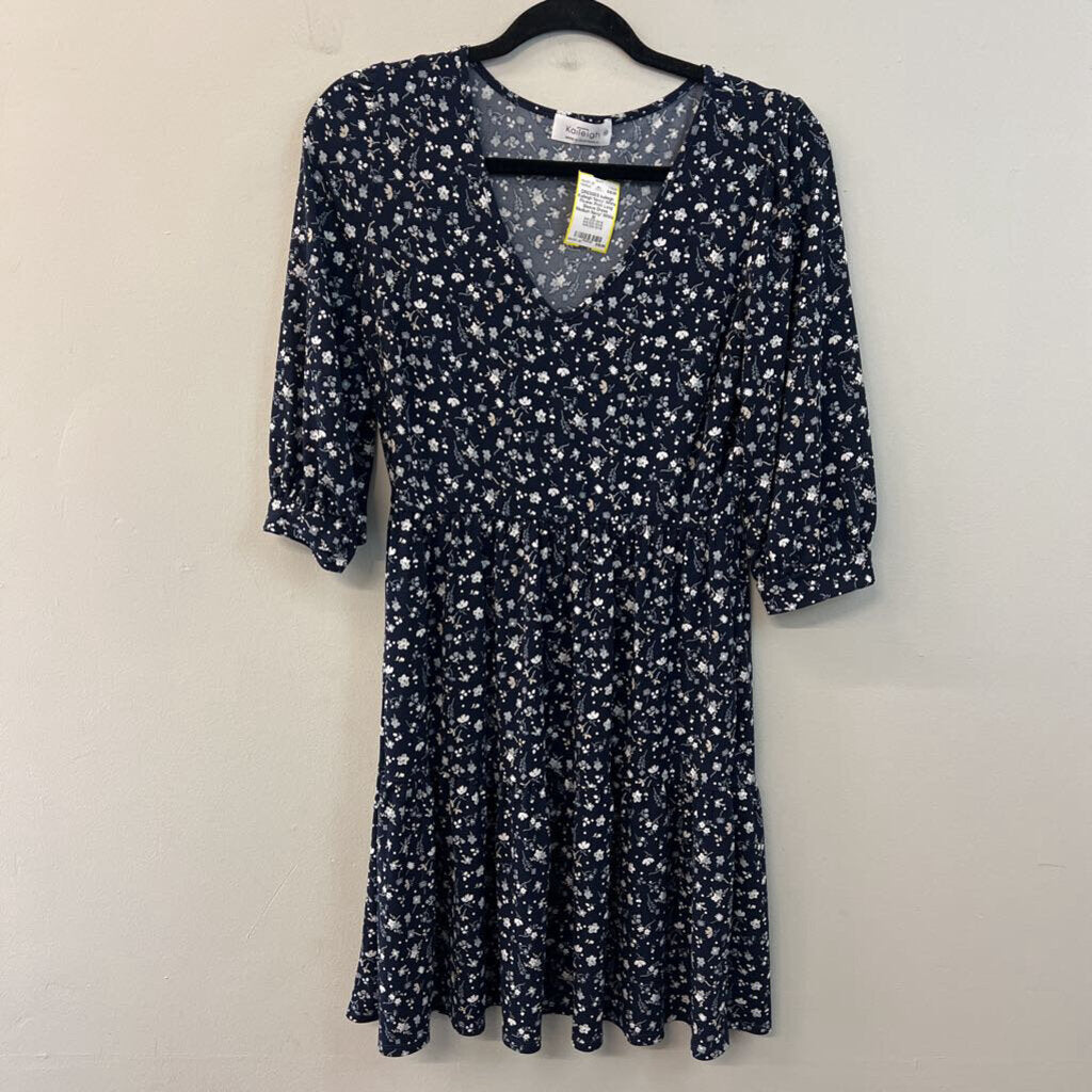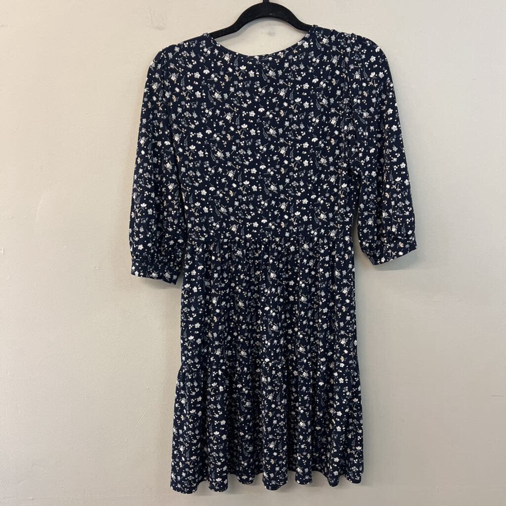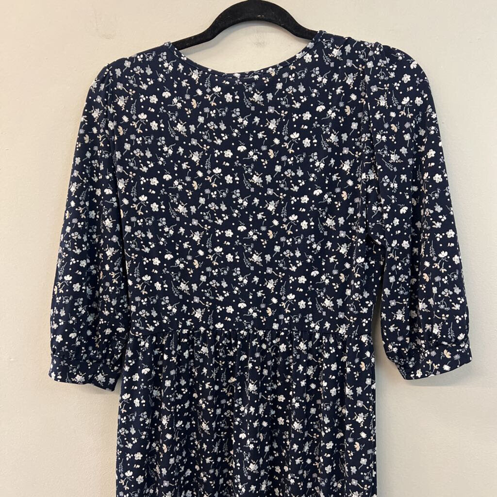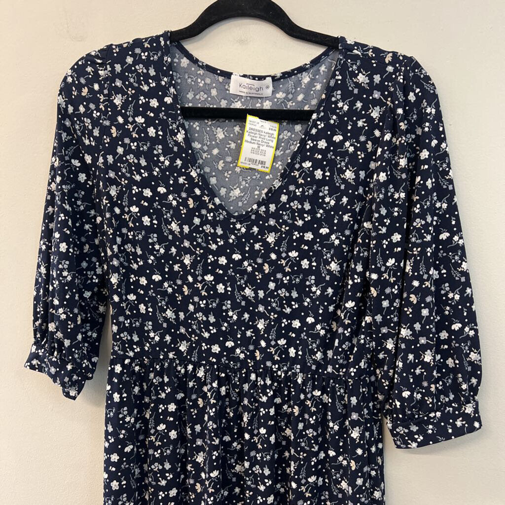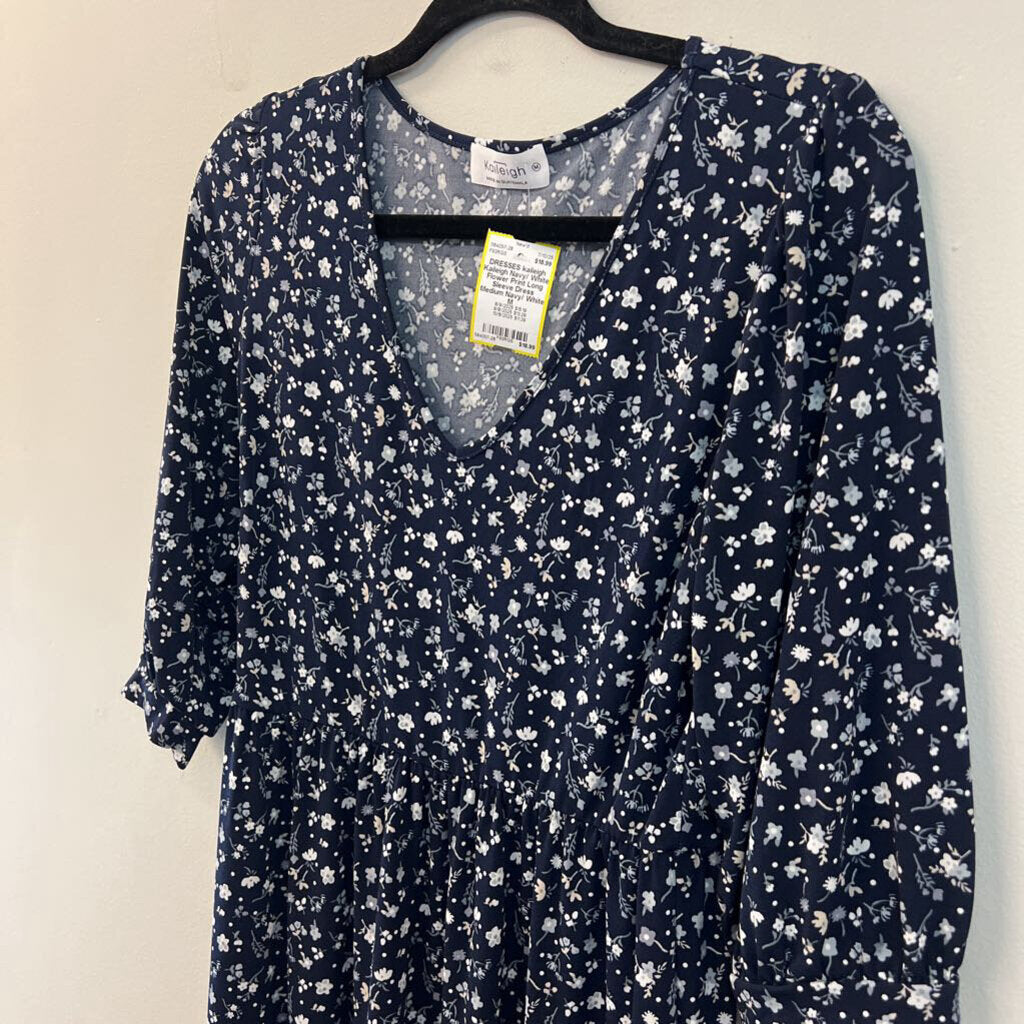 Kaileigh Navy/ White Flower Print Long Sleeve Dress Medium