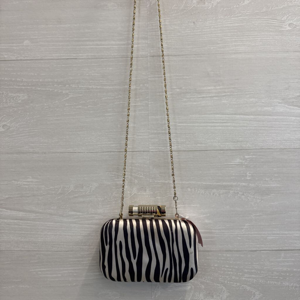 Kardashian Kollection White/ Black/ Gold Zebra Print Clutch/ Crossbody Purse