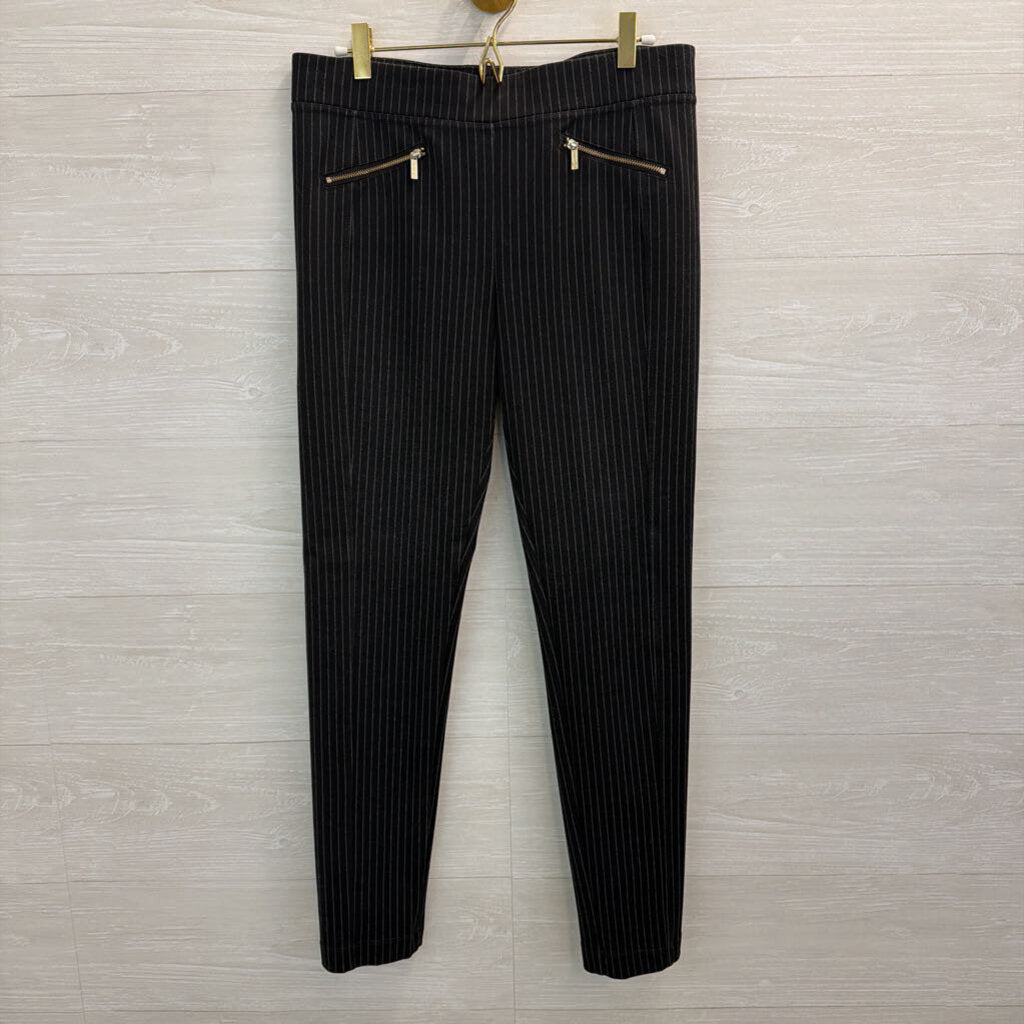 Karl Lagerfeld Black/ Grey Pin Stripe Front Zip Pockets Skinny Leg Pull On Pants Medium