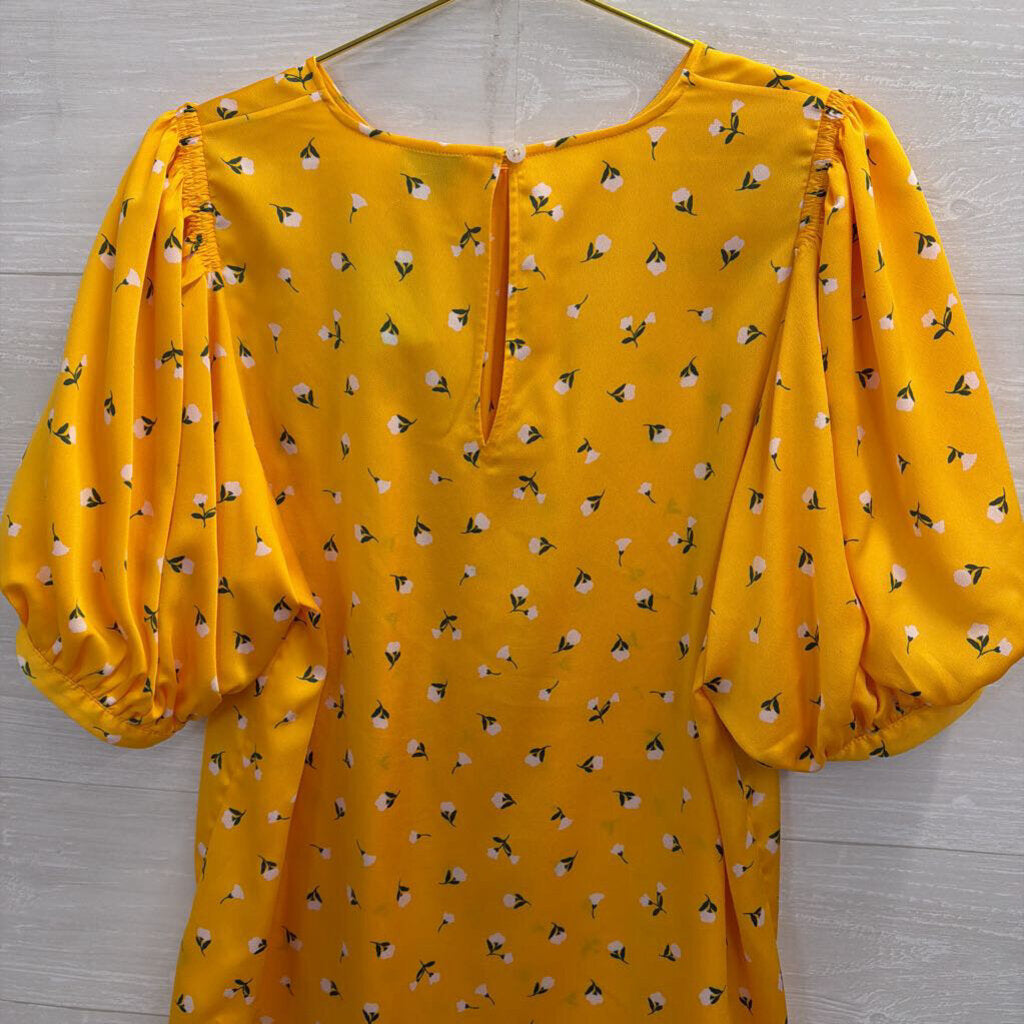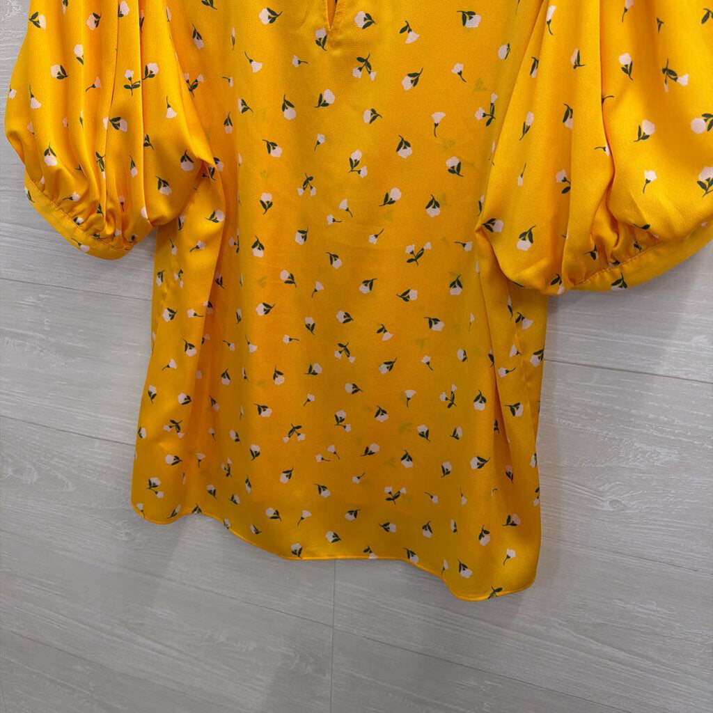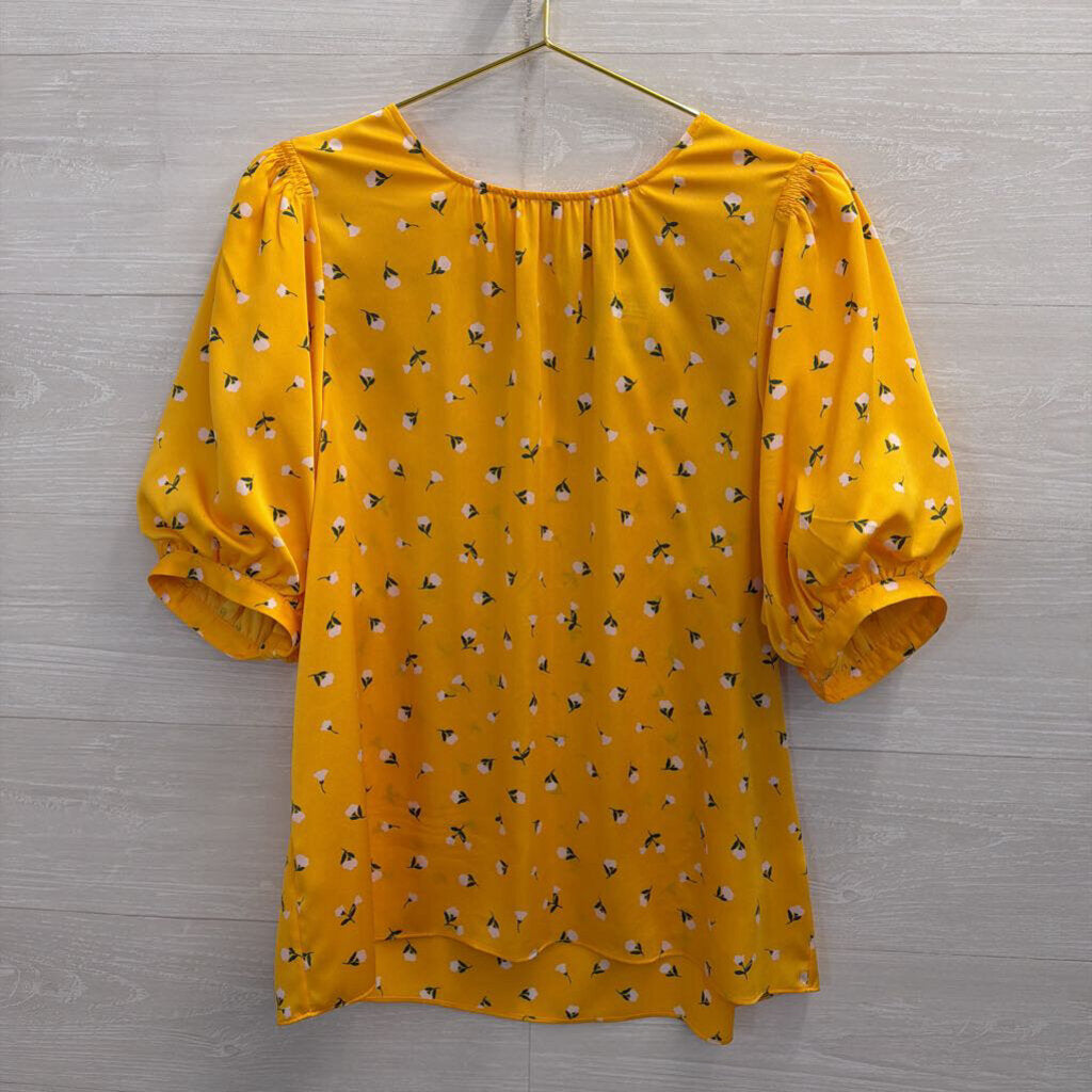 Kate Spade Yellow/ White Flower Print Short Puff Sleeve Top Large