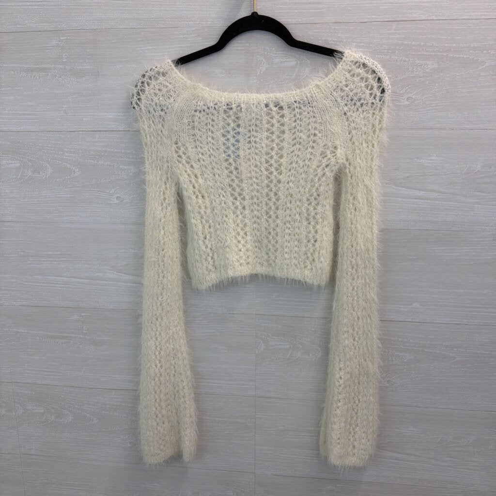 Kimchi Blue White Soft Knit Cropped Long Sleeve Sweater Extra Small