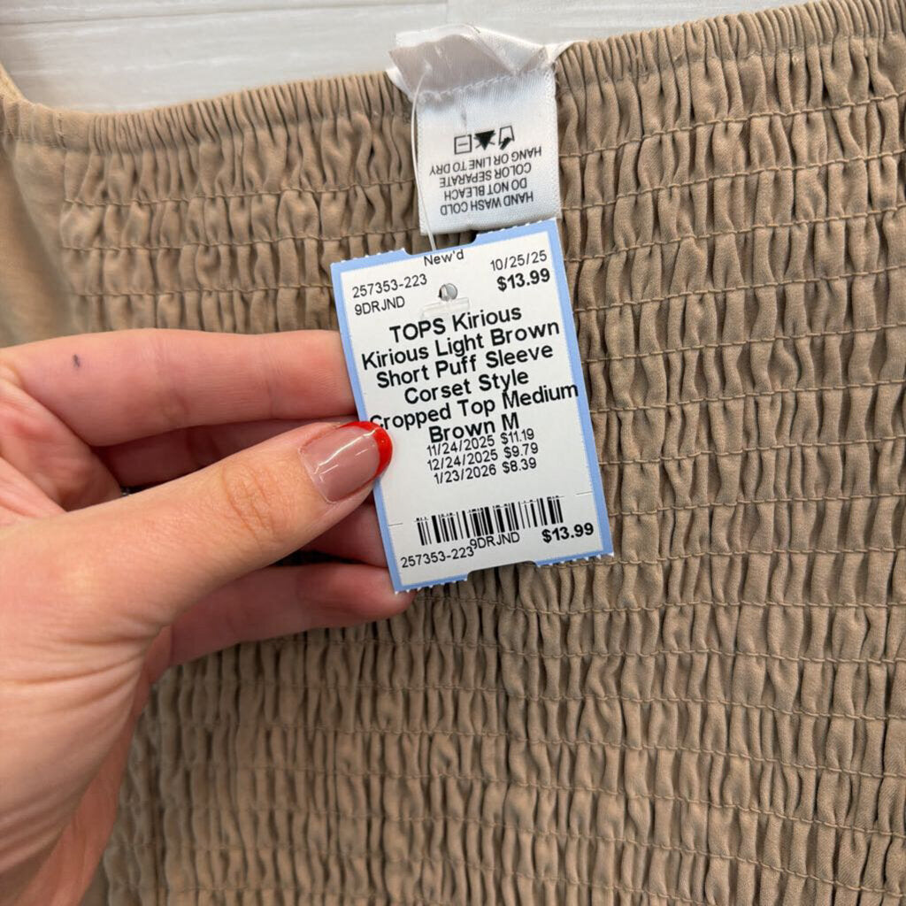 Kirious Light Brown Short Puff Sleeve Corset Style Cropped Top Medium