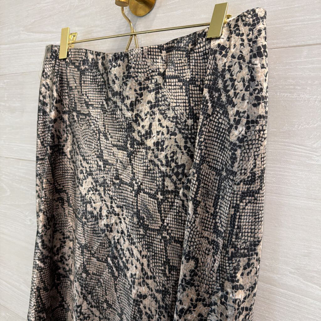 Know One Cares Black/ Beige Silky Snakeskin Print Midi Skirt Large