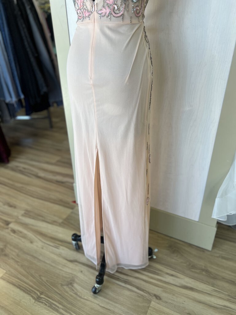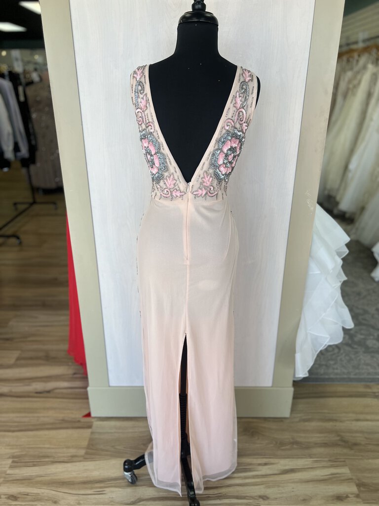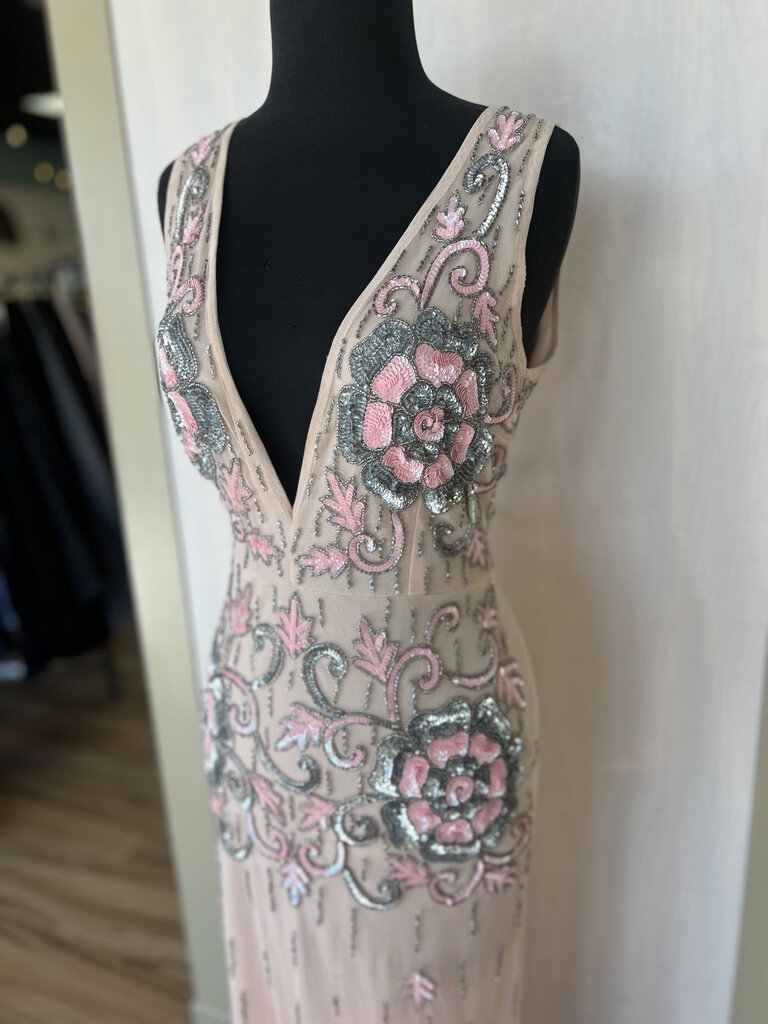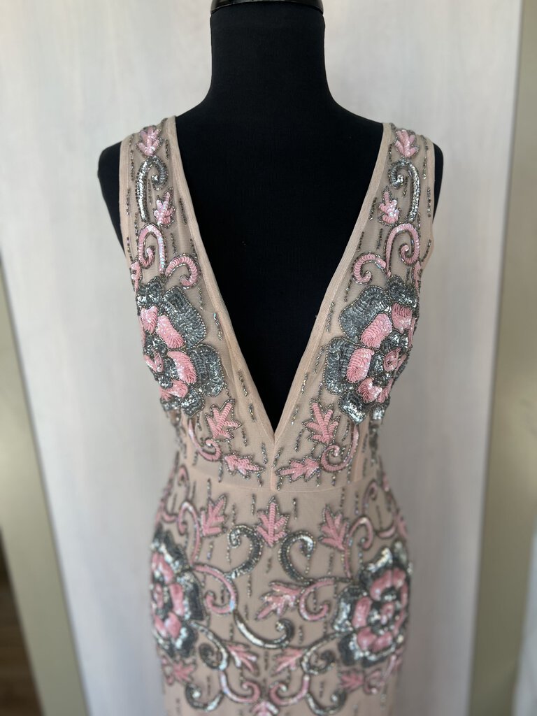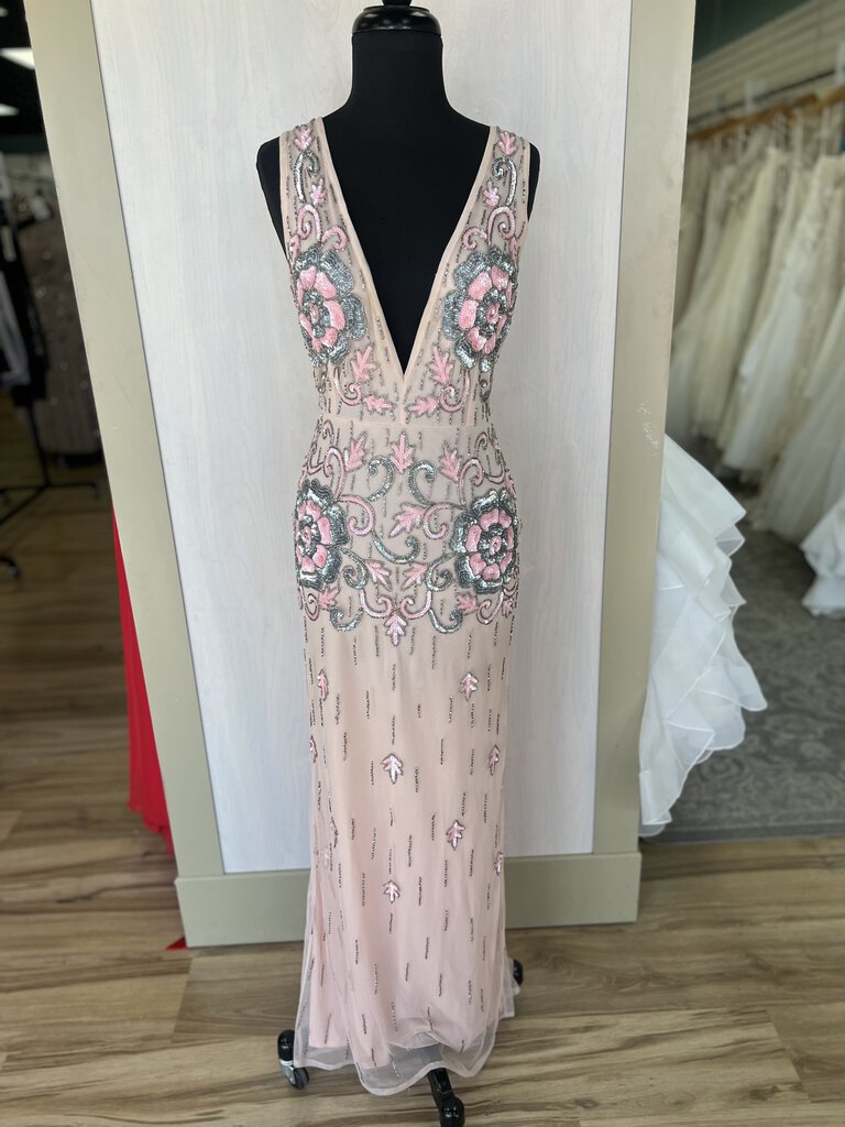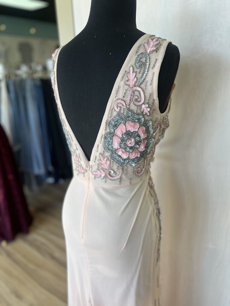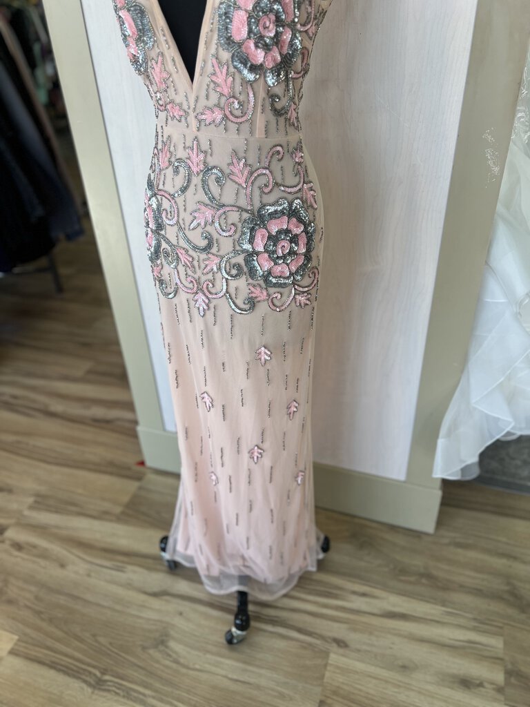 Lace and Beads Pink V Neck Sequin Flower Detail Formal Small