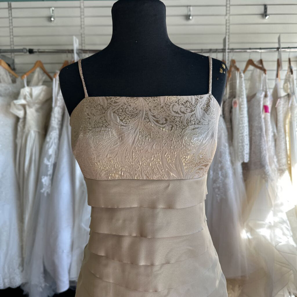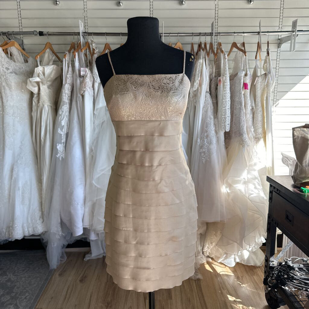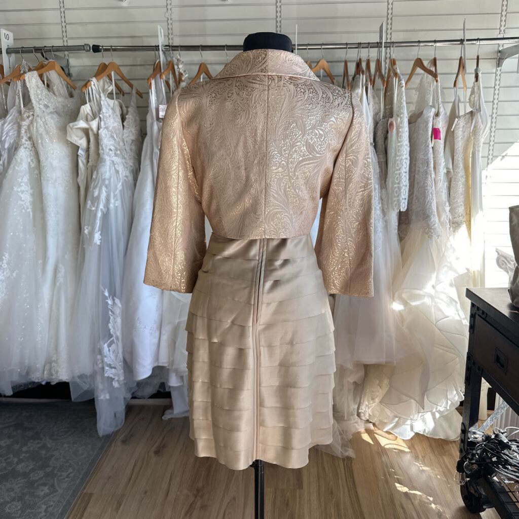 Lady's Image Gold Print Layered Short Formal Dress With Jacket 6