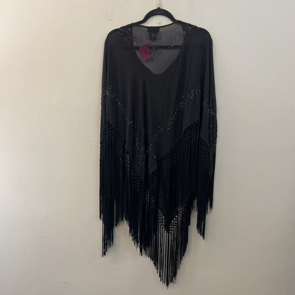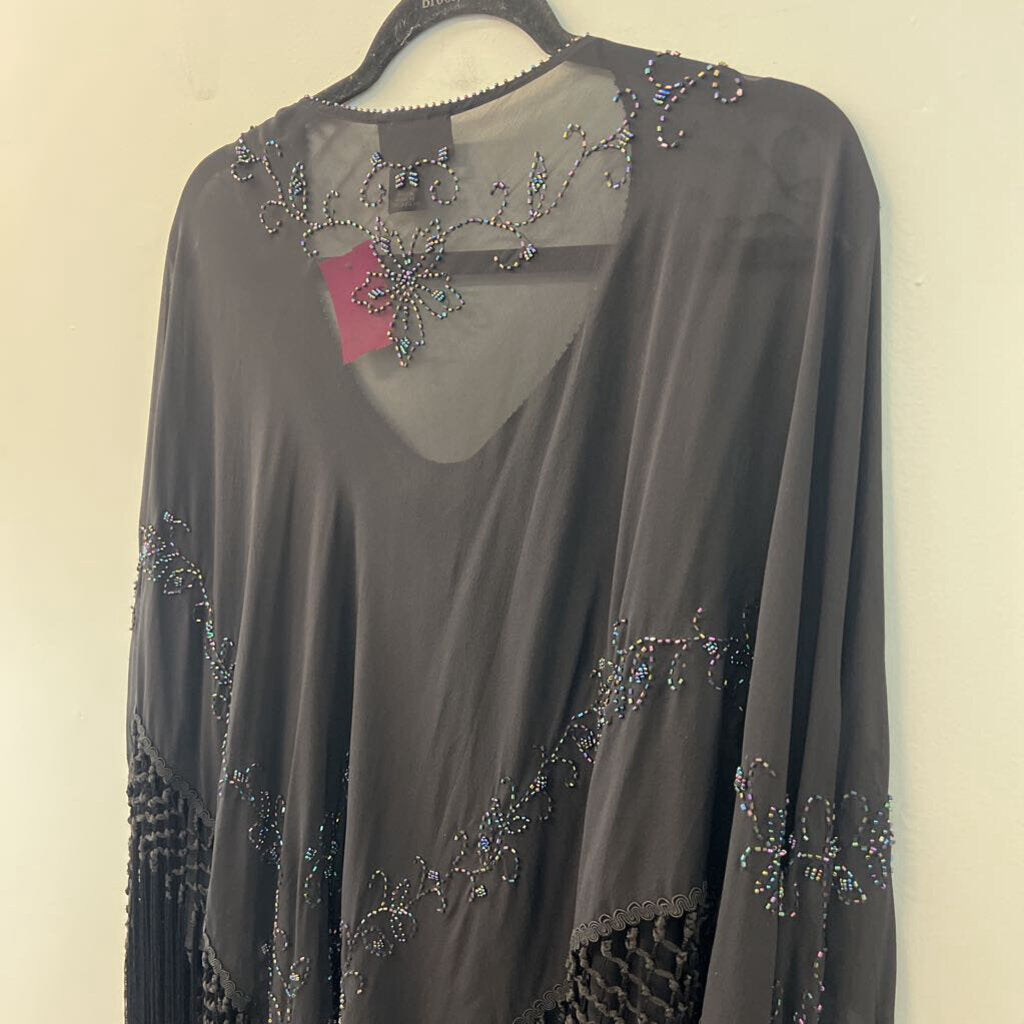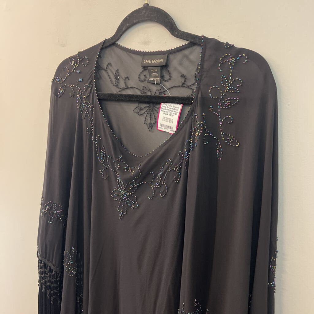 Lane Bryant Black Beaded Fringe Hem Poncho Top 14/20
