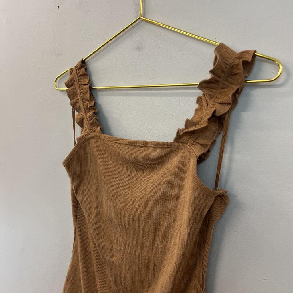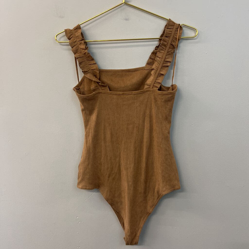 Le Lis Soft Brown Ruffle Strap Bodysuit Medium
