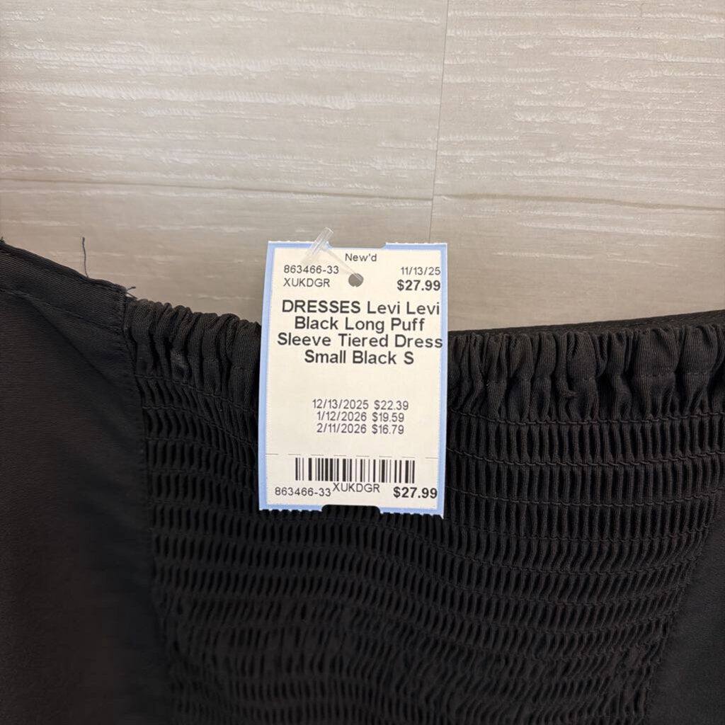 Levi Black Long Puff Sleeve Tiered Dress Small