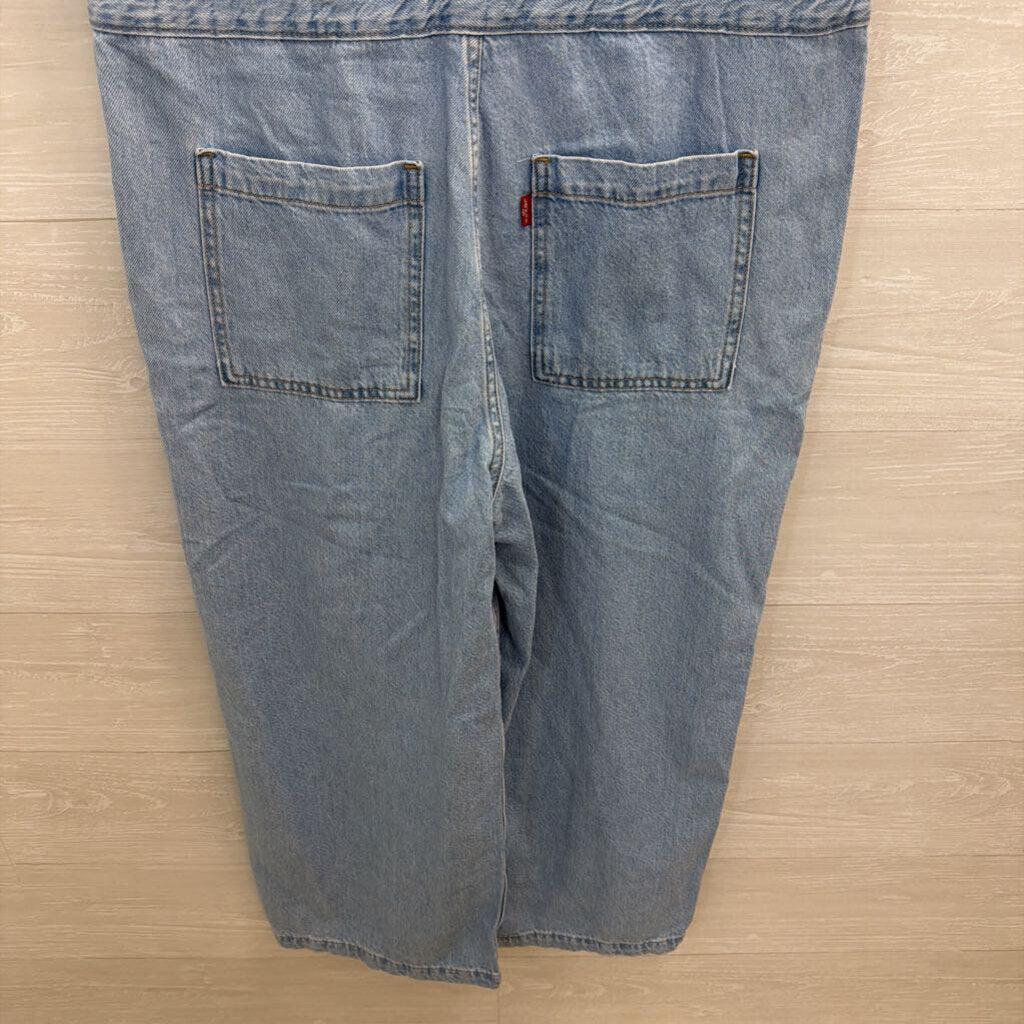 Levi Light Wash Short Sleeve Snap Front Denim Jumpsuit Large