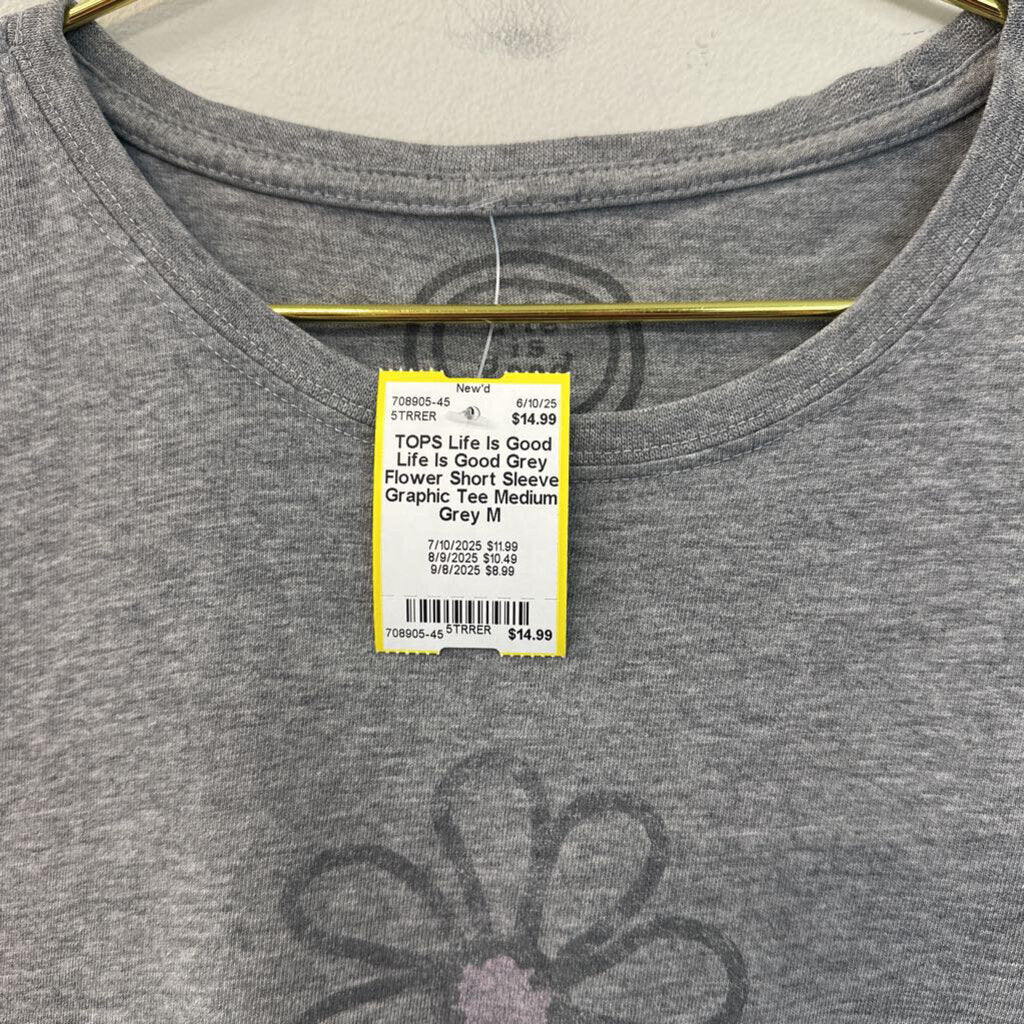 Life Is Good Grey Flower Short Sleeve Graphic Tee Medium