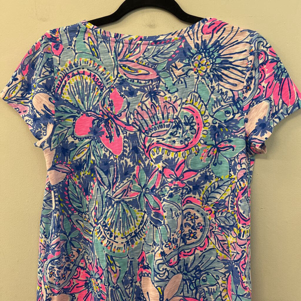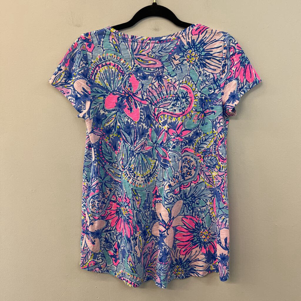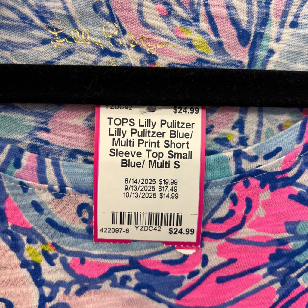 Lilly Pulitzer Blue/ Multi Print Short Sleeve Top Small